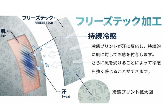 コットンクールに、薄くプリントした雪の結晶プリントが汗に反応する事で、さらに『ヒンヤリ』します。