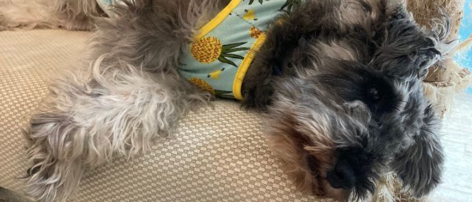 売れ残りから保護した犬(今では当園の優秀な看板犬になっています)