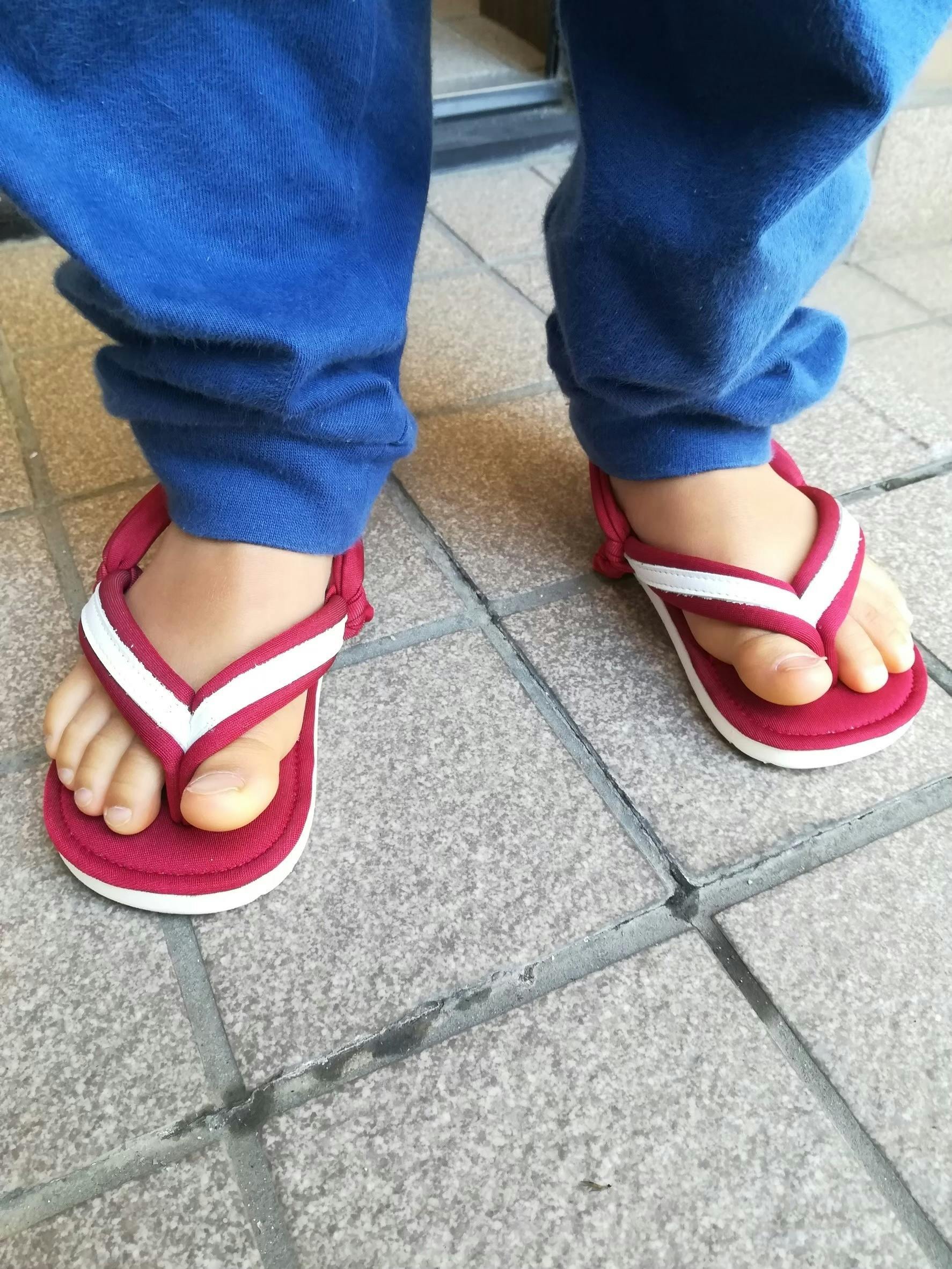 足育サンダルは鼻緒部分でしっかり掴んで歩くので土踏まずを作る上でとても有効なサンダルです。
