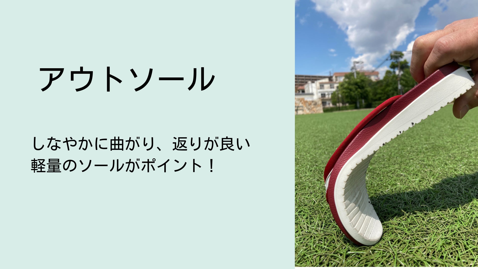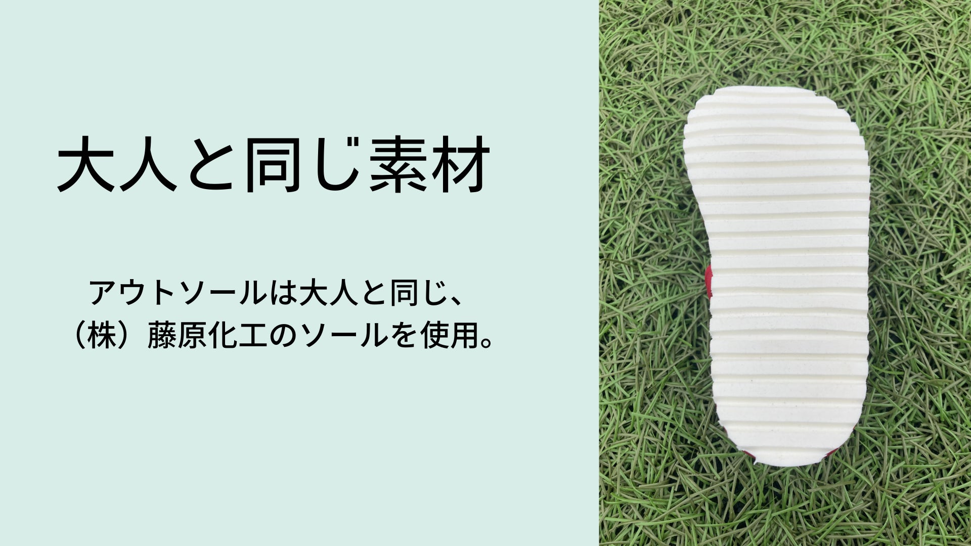 (ソールは大リーグ選手や世界的なアスリートのシューズを手掛ける技術を持つ、(株)藤原化工のソールを使用。藤原化工の紹介文は下記項目にて説明。)
