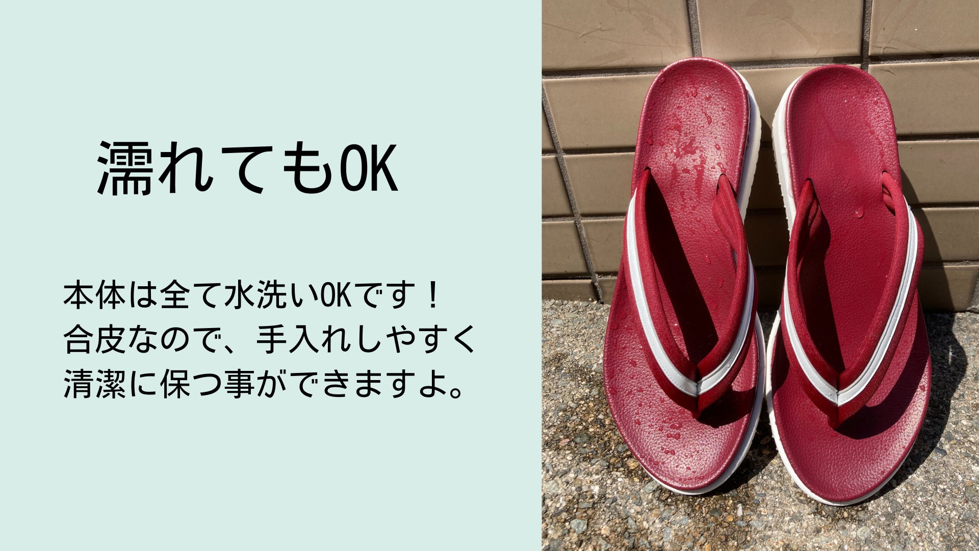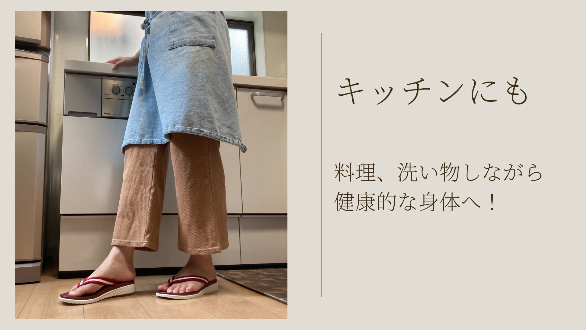 普段から家事をする際、わら草履を使っていたが、お風呂掃除などをしていると濡れてしまい、すぐダメに。。足育サンダルは濡れを気にしなくていいのが良かった。