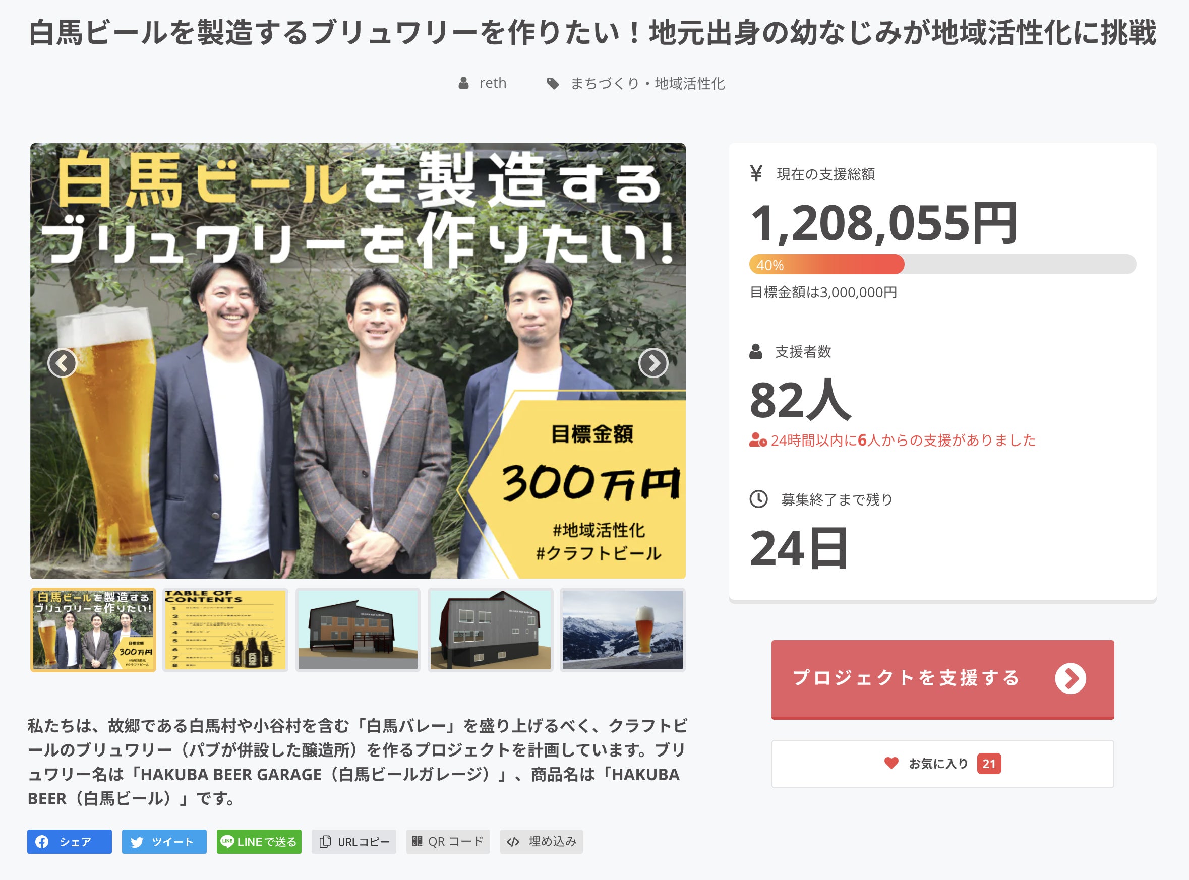 昨日9月12日を持ちまして、私たちのクラウドファンディングの挑戦が終了しました。ブリュワリー建設費用及び醸造免許取得費用の一部として目標額300万円を目指していましたが、おかげさまで344万円ものご支援を頂き、無事目標を達成して終えることができました。今後ご支援いただいた資金で出来上がったものも順次活動報告やSNS等で発信していきます。楽しみにお待ちください!(SNSもぜひフォローしてください^^)また、商品として設定したリターンに関しても、デザインや具体的な発送時期等が確定しましたらご報告させて頂きます。改めて、ご支援いただいた皆様本当にありがとうございます。これからが本当のスタートです。引き続き私たちの活動を見守りながら、ブリュワリーが完成しましたらぜひ白馬村や小谷村にたくさん遊びに来てください!みんなで楽しく乾杯しましょう!