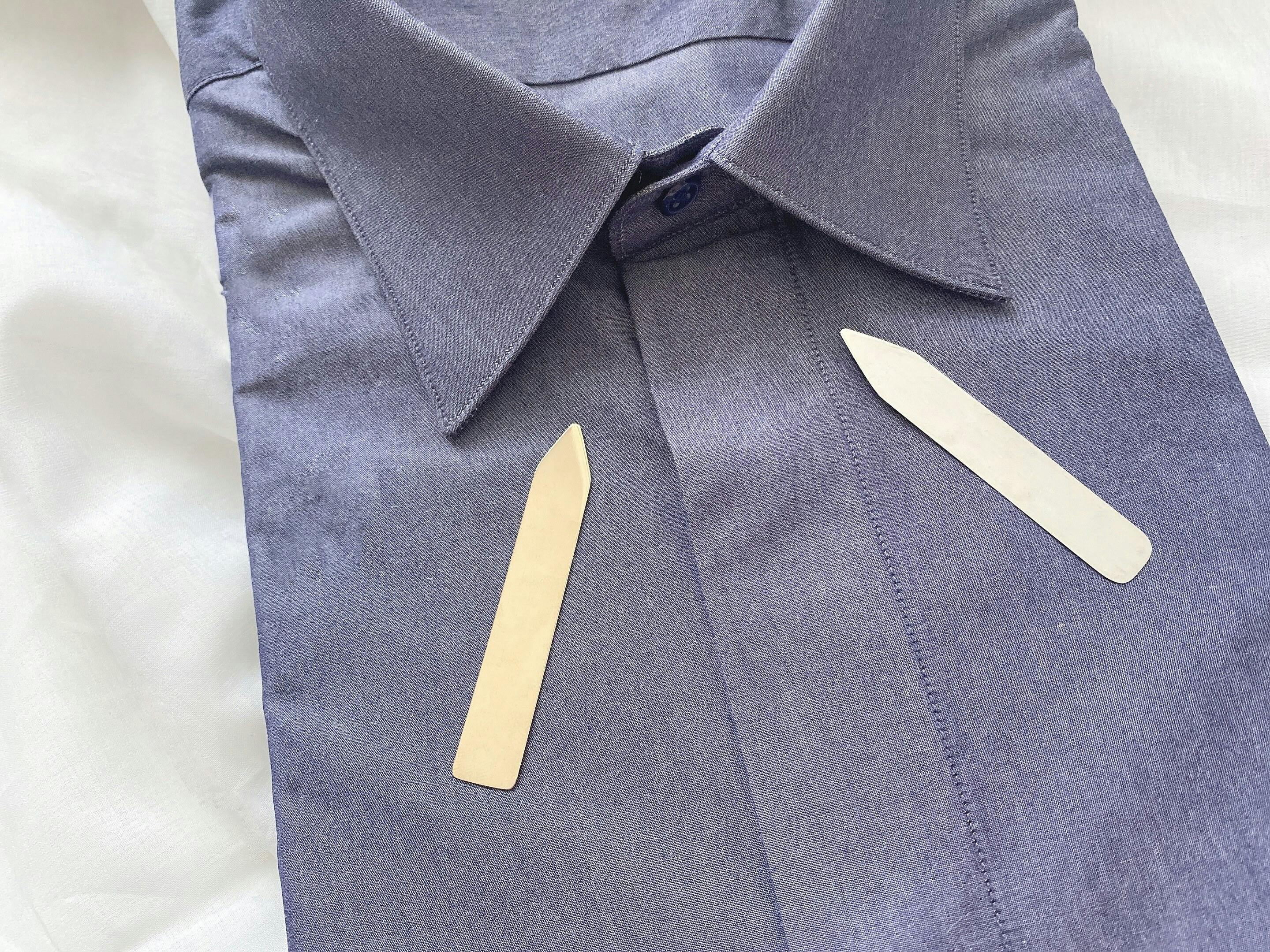シャツの衿の形を綺麗にキープするため、通常はプラスチックが入っていますが、見えないところに拘るおしゃれ好きな男性へ向けたカラーキーパー。