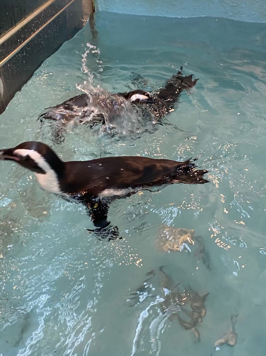 ご支援誠にありがとうございます。皆様のご支援のお陰で211名様1,555,370円 という結果を残せました。感謝しかありません。ペンギンさんたちの為に大事に使わせて頂きたいと思います。主にペンギンさんの食費や環境維持に使用となります。東京都の感染者数が増える中緊急事態宣言も延長し、8月いっぱいまでとなっております。その後どのようになるのかわかりません。おそらく延長やまん延防止措置になるでしょう。当店のペンギンさんはおかまいなしに元気いっぱいです!雛もすくすくと育ち、7羽目にあたるナオボーと見分けるのが難しいくらいです。それでもまだ甘えん坊なのですが・・・。右手前から二羽目がすいちゃん(雛)です。すいちゃんは左のフリッパーに白いバンドが三つついております。リターンに関しましてはご支援者様にご連絡してはありますがTシャツなどはおそらく9月~10月にはお届けできると思います。デザイン上がり次第、発注させていただきますので今しばらくお待ちください。デザインマスクに関しましてはもうすぐ発送できると思いますのでもう少々お待ちいただければ幸いです。お食事系や水槽掃除、ペン散歩などは緊急事態宣言解除後、お店が再開したあとになります。いまが耐える時です。みんなで一致団結し、乗り越えていきましょう!ペンギンさんたちに一日でも早く会えるように!