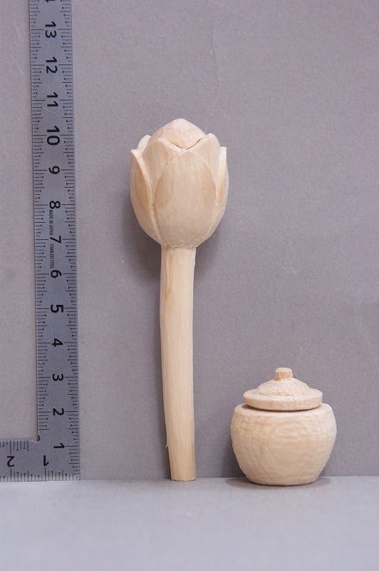 レプリカのサイズとしては、薬壺の高さが約3cm、蓮華が約10.5cmです。
