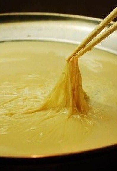こだわりの自家製の豆乳スープと沖縄の紅豚あぐーを皮付きのまま厚さにまでこだわって