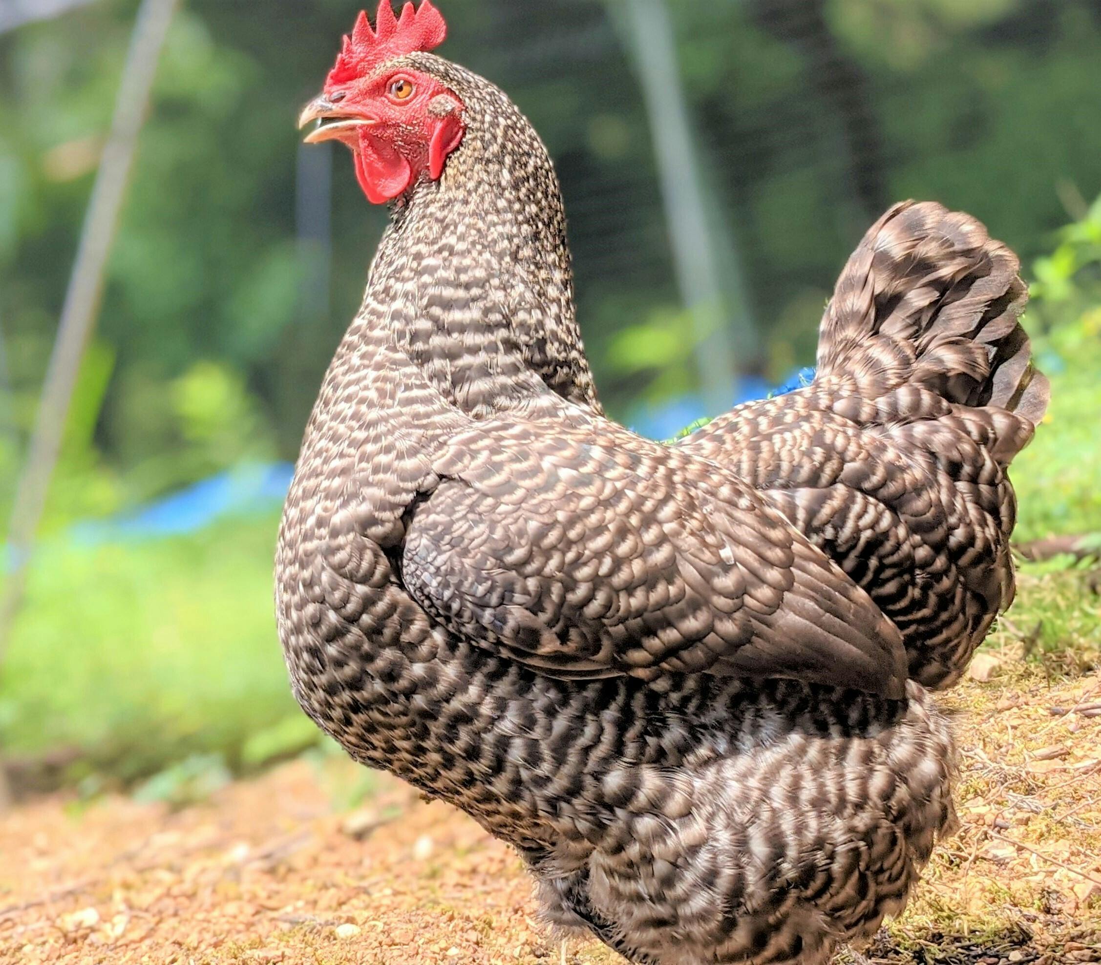 横斑プリマスロック種とロードアイランド種の交配させ、お互いの良いところを受け継いだ岡崎のブランド鶏です。