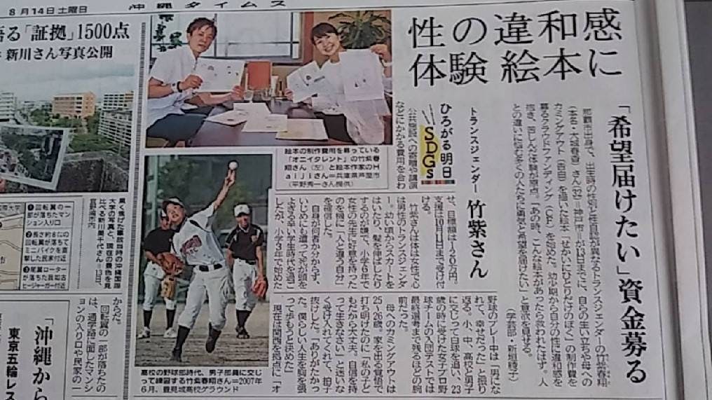 8月14日(土)、竹紫春翔(ちくし はると)の出身、沖縄県の新聞社、沖縄タイムスさんにクラウドファンディングの想いを掲載していただきました。