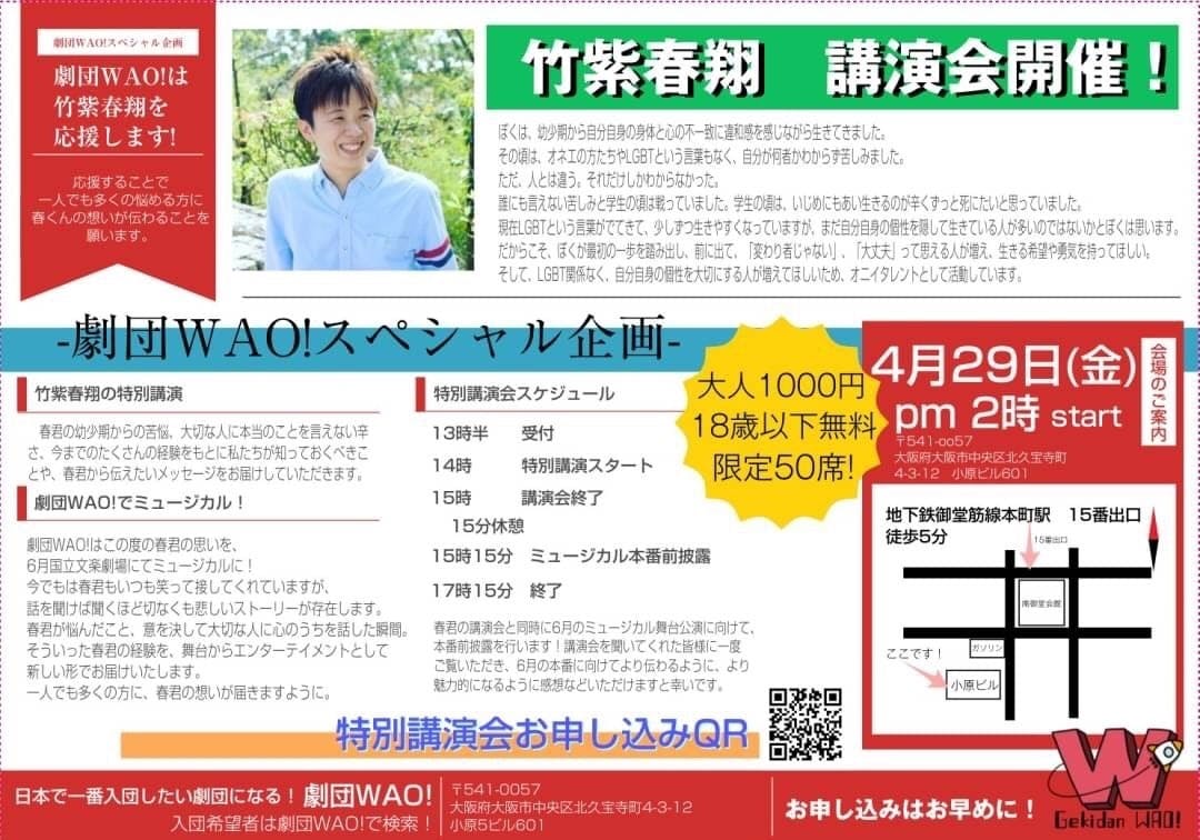 4月29日(金)祝日 劇団WAO!スペシャル企画講演会は、こちらから↓