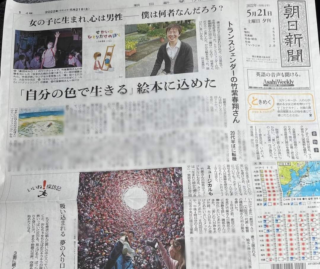 男女って何?性別の枠を越えた、個性を大切にできる絵本を子供達に届けたい。プロジェクトオーナーの竹紫春翔です。出版日も5月27日に決定しまして、まもなく皆様にお届けできる日が近づいてきました。絵本が届き次第皆様に発送していきますので、後少しだけお待ち下さい。そして、5月21日(土)朝日新聞 関西版の夕刊に取り上げていただきました!絵本のことやミュージカルのこと、そして僕の思いもたくさんはなしています。ぜひ読んでほしいです。本日、5月22日(日)にも朝日新聞 デジタル版にも掲載されました!https://www.asahi.com/sp/articles/ASQ5N6DC5Q5LPLZU007.html?ref=amp_loginデジタル版はこちらから!この記事を読んで、少しでも誰かの救いになれたら嬉しい。絵本やミュージカルを見て、なにか力になれたら本当に嬉しいです。ぜひ、ミュージカルも見ていただきたいです。ミュージカルは、6月25日(土) 大阪国立文楽劇場。 2公演 12:00 16:15 「生まれた時から嘘つきで」チケットはこちらから https://pro.form-mailer.jp/fms/cfd06c6d251378たくさんの方々の応援のおかげでここまでこれました。本当にありがとうございます。今後も頑張って参りますので、変わらず応援よろしくお願いいたします。竹紫春翔