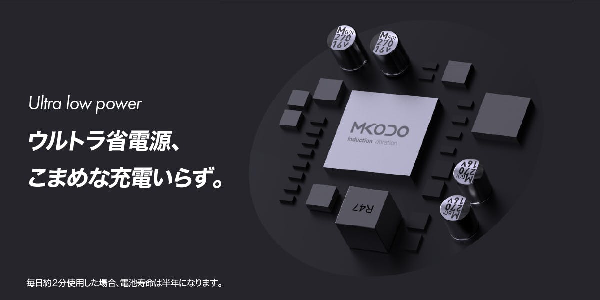 AAA電池2本の消費寿命は半年と、信じられないほどの省電源を実現。(毎日約2分使用した場合の電池寿命です)