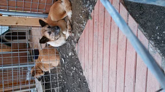 いよいよ期限が切れた 二匹の野犬は前日に出来たばかりの シェルター犬舎