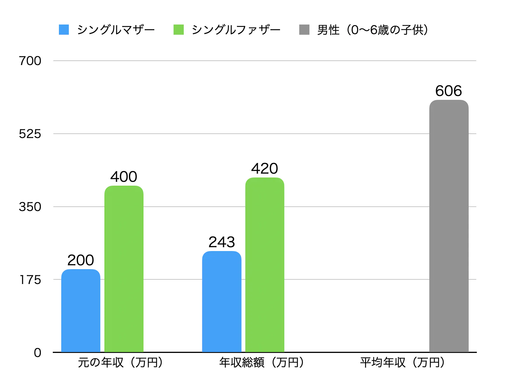 皆さんはシングルマザー・シングルファザーの年収をご存知でしょうか。平成28年度のシングルマザーの年収は 「243万円」でシングルファザーの年収は「420万円」でだそう です。これには国からの手当て金も含まれています。その分を差し引くとシングルマザー 「200万円」シングルファザー「400万円」になりその差は2倍になります。