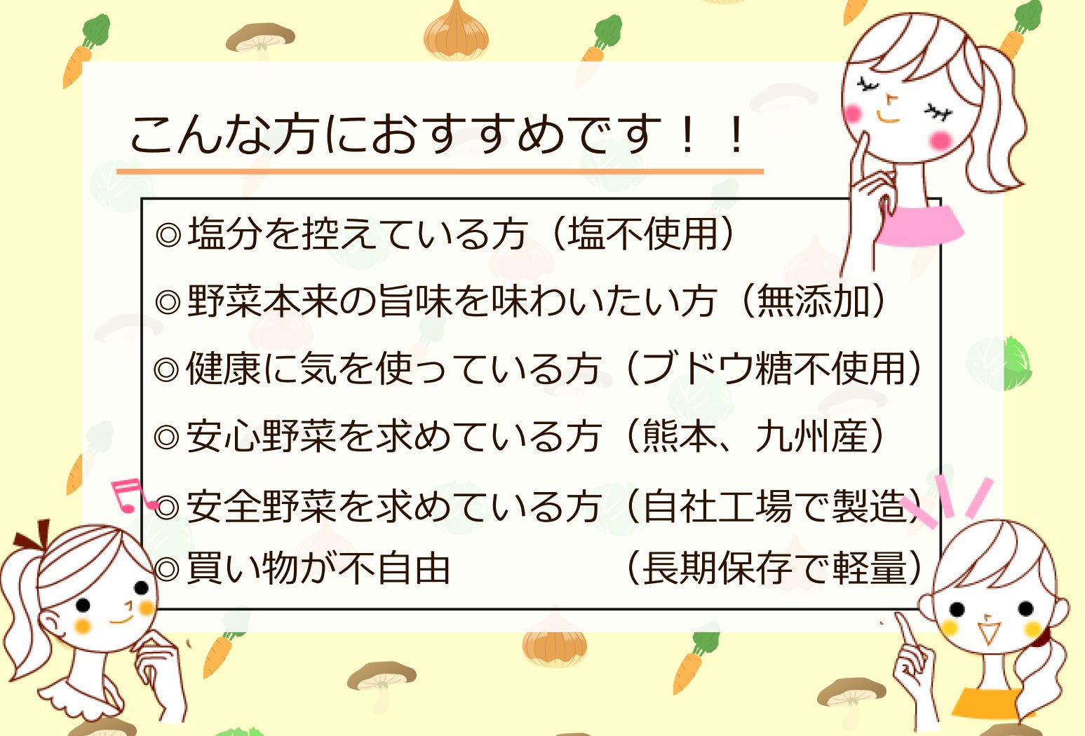九州産の野菜を使用し1つ1つ丁寧に、ゆっくり時間をかけて作っております。