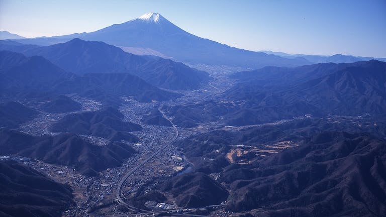 都留市は、山梨県東部にあり、都心から自動車で約80 分、電車で約90 分と都心からのとアクセスの良い地域です。