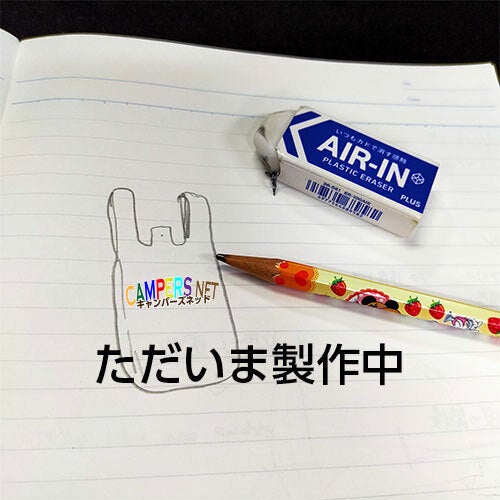 キャンパーズネットの広告を作るにあたり、紙のチラシではなくもっと使えるものをということで、レジ袋に広告を印刷したものを考えております。