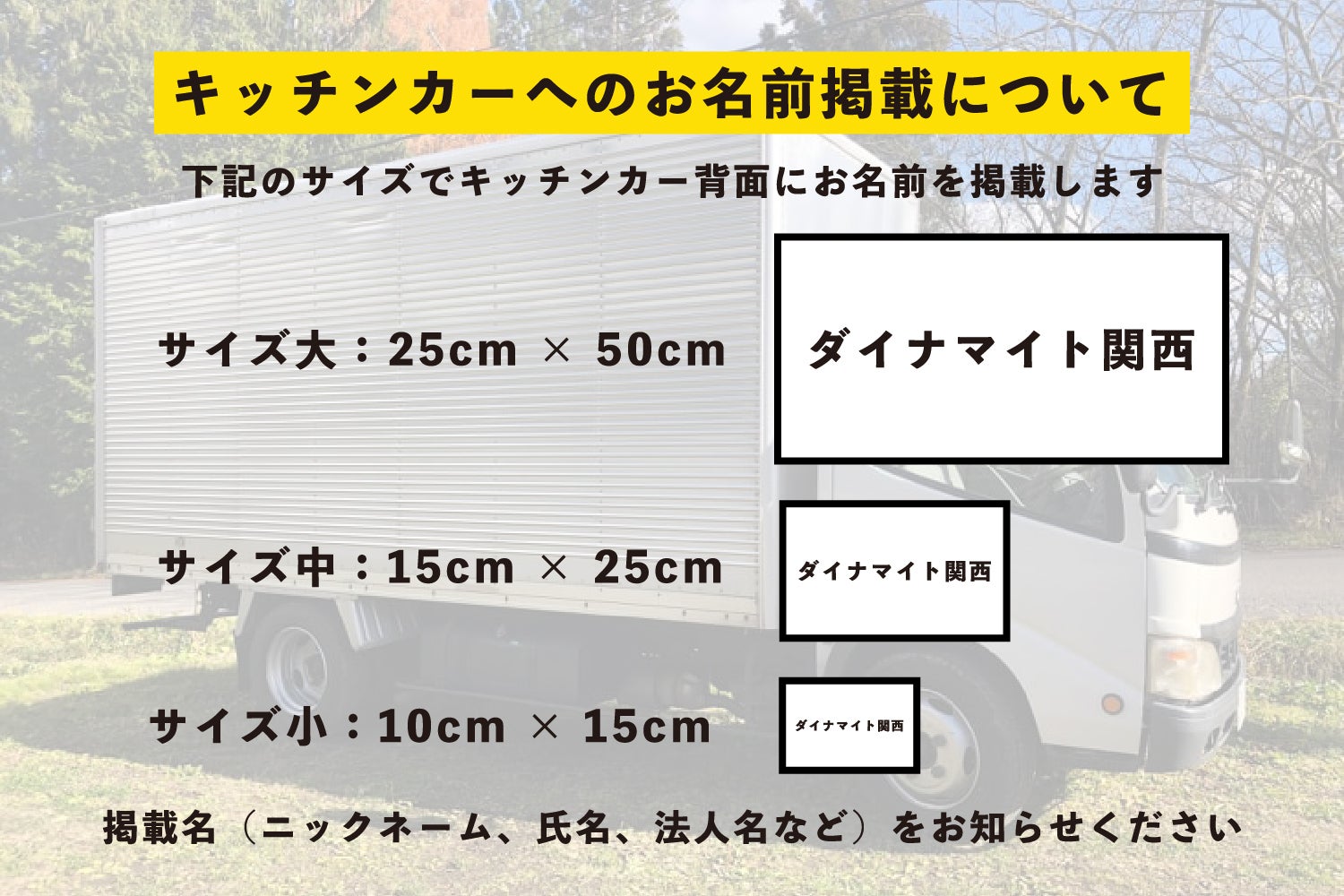 なお、下記ののプランへご支援いただいた方には、ご支援の御礼として、キッチンカーの背面にお名前を掲載します。
