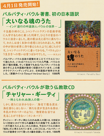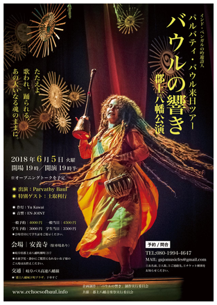 ジョイグル! 「バウルの響き」制作実行委員会の佐藤友美です。 本日よりパルバティ・バウル版画展の開催、 阿部櫻子のパルバティ・ドキュメンタリー・プロジェクトのクラウドファンディング、開始しております。 よろしければご一読ください! さて、東京公演は2公演完売、残っている10日の本妙院公演ももうそろそろ…という状況ですが、京都はまだまだお席に余裕があります。ぜひ、お近くの方にお知らせやお勧めしていただけると嬉しいです。 さて6月の京都公演に先駆けまして、来週5月13日、私佐藤が再び京都に参りまして行うプレイベントがあります。なんと、最近はタラブックスのお仕事で各地を駆け回っていらっしゃる、装丁家の矢萩多聞さんとのトークイベントです。 以下、多聞さんによる紹介文。さすが、読みやすくわかりやすい… ー*ー*ー*ー*ー*ー 狂っている! 狂っている! だれもが わたしを 狂っているという でも 狂っているのは わたしだろうか それとも 世界のほう? 「バウル」はインドとバングラデシュを放浪する吟遊詩人でありながら、求道の遊行者、巡礼者でもあります。 仏教、イスラーム、ヒンドゥーなどの伝統に触れながらも、けしてどの宗教にも属さず、市井の人々がわかる素朴な言葉で、いのちと世界の秘密を歌い、舞い踊り続けてきました。師弟相伝で受け継がれてきたその歌は、現代もインドやバングラデシュの人びとに親しまれ、海外にもファンが多く、かのノーベル文学賞受賞者タゴール、ボブ・ディランにも影響を与えたといわれています。また、ユネスコ無形文化遺産にも登録されています。 2018年6月、インドで最も人気のあるバウルのひとりであるパルバティ・バウルさんが来日し、京都で公演が行われます。その前にバウルのことをもっと知っておきたい。パルバティ・バウルさんの弟子である佐藤友美さんをお招きし、バウルの歌に触れ、その文化的背景、秘められた思想についてやさしく語っていただきます。 ▼「バウルの響き」パルバティ・バウル京都公演についてhttps://www.echoesofbaul.info/ ◎ナビゲーター佐藤友美 Tomomi Satoバウル行者、画家、歌人、翻訳家。1986年生まれ。幼少期をオーストラリア、シンガポールで過ごす。青夏会の松本一に画を師事、定期的に個展を開催。オーストラリア国立大学で言語学を学ぶ。卒業後、南インド・ケーララ州で働きながら古典音楽に取り組むが、バウルの歌とその表現に魅せられ、パルバティ・バウルに師事する。現在は修行のため日印を行き来する生活を送っている。 矢萩多聞 Tamon Yahagi画家、装丁家。1980年生まれ。9歳でネパールを訪れてから、毎年インド・ネパールを旅する。中学1年生で学校をやめ、南インドと日本を往復。ペンによる細密画を描き、銀座、横浜などで個展を開催する。2012年、事務所兼自宅を京都に移転。これまでに500冊を超える本をてがける。著書に『偶然の装丁家』(晶文社)、『たもんのインドだもん』(ミシマ社)、共著に『タラブックス』(玄光社)がある。 ================================================== ▼日時5月13日15時〜18時 ▼会場恵文社一乗寺コテージ京都府京都市左京区一乗寺払殿町10叡電「一乗寺駅」より徒歩3分 ▼料金 1000円(チャーイ付き) ▼お問い合わせ・ご予約 恵文社一乗寺https://cotage.sakura.ne.jp/event_formTEL 075-711-5919 アムブックスambooks@tamon.in ー*ー*ー*ー*ー*ー 私は、井生明さんによるバウルの写真や、阿部櫻子さんが今年の1月に撮影された映像、そしてエクタラを持っていきます。 また、今回制作した本・CDの他にも、パルバティ・バウルのCDを数種、持参しますので、ご興味ある方はご購入いただけます。 ご参加、お待ちしております。 どうぞよろしくお願いいたします。 「バウルの響き」制作実行委員会佐藤友美