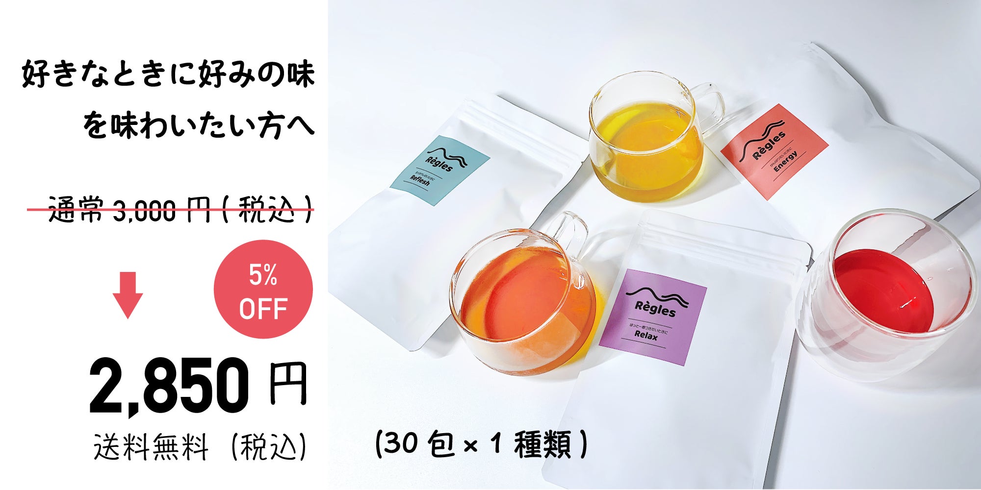 Règlesは、生理やPMSといった毎月訪れる女性の体調と気持ちの変化に寄り添い、「気持ちを”ととのえる”」をテーマにした女性専用のブレンドハーブティーです。