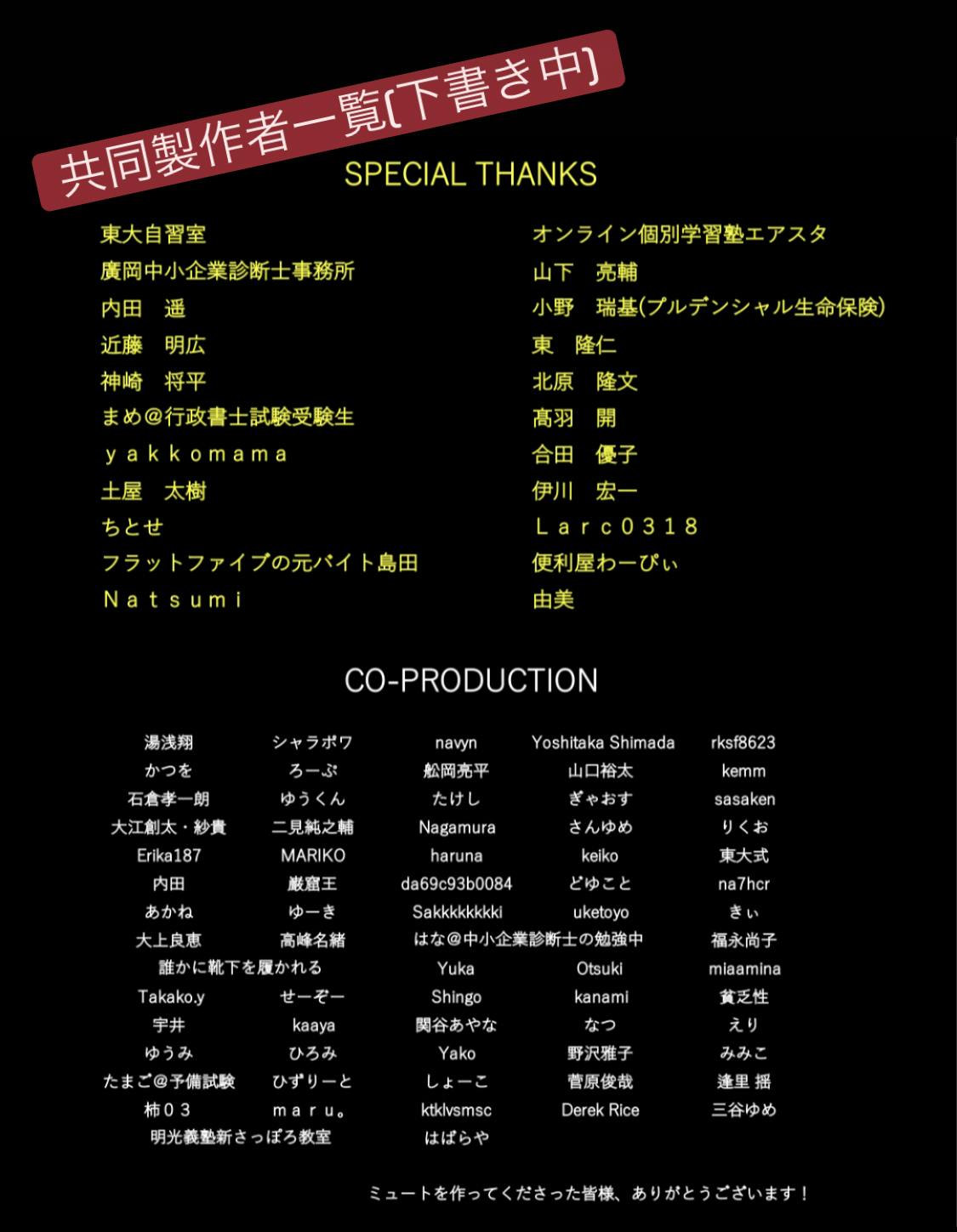 表示する名前はリターンの備考欄に記載頂きたかったのですが、空欄だった方はアカウント名を入れています。