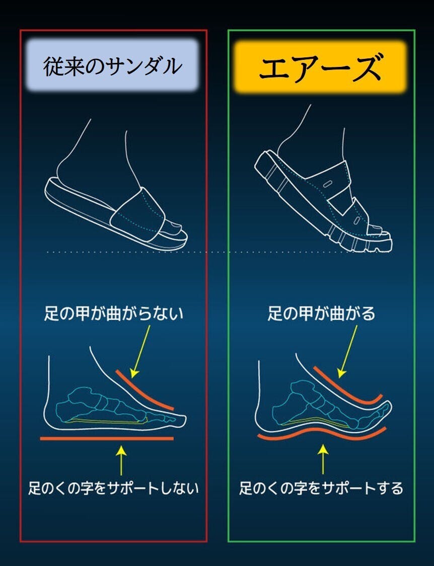 上記の要因を解消した製品が高反発サンダル【エアーズ】になります!