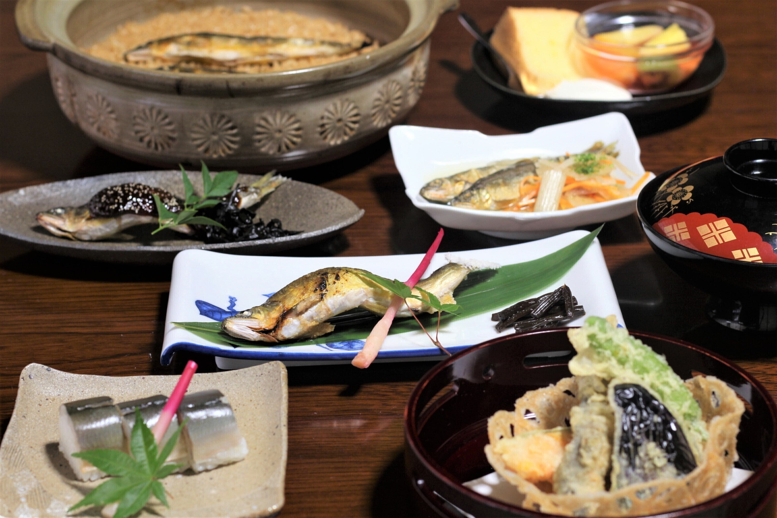 現在は後継者の五代目の大林勝敏が振草川の鮎、奥三河産ジビエ、錦爽鶏といった地元の食材を使った料理を提供しています。