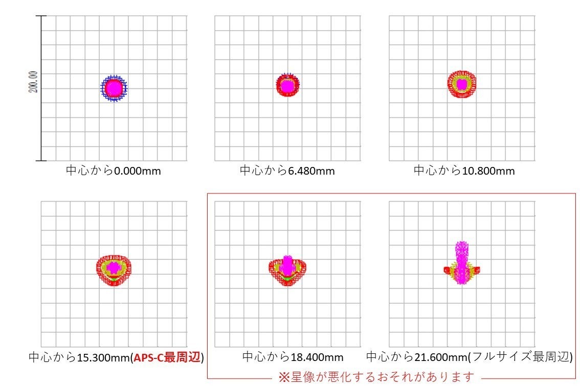 フルサイズセンサー搭載のカメラでの最周辺の星像は少し広がってはいますが、担当者としては許容範囲だと考えています。
