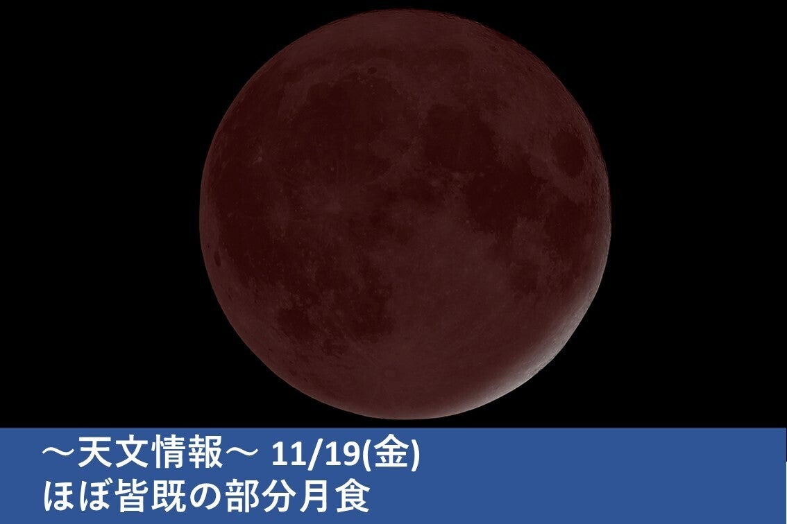 明日(11/19)にほぼ皆既の部分月食が見られます。
