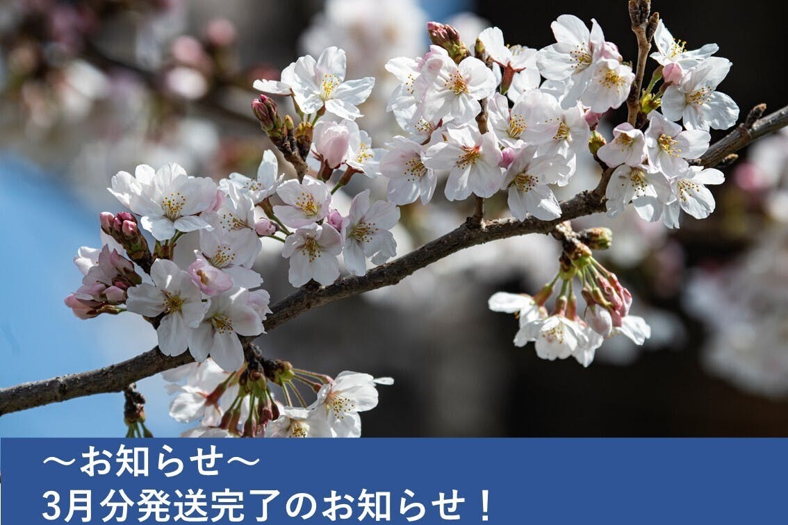 3月分の発送が完了いたしました。
