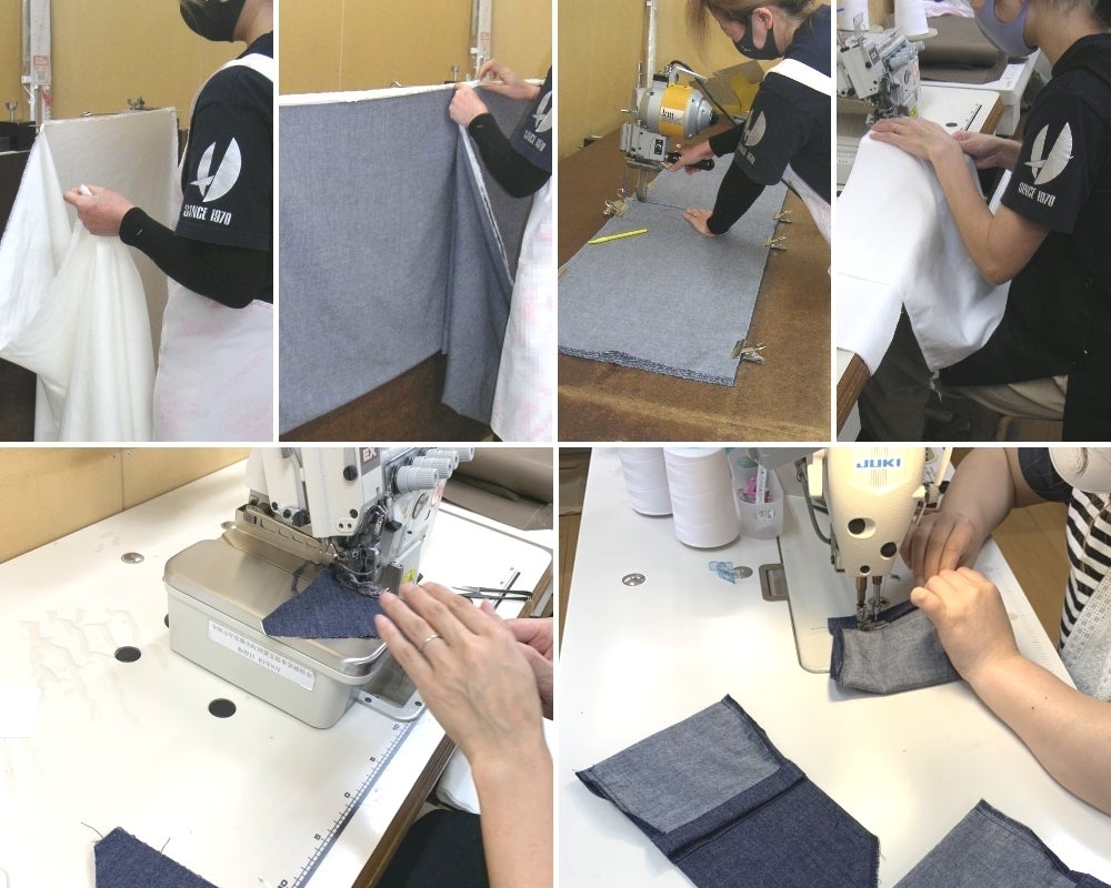 流れ作業ですからあたり前と言えばあたり前ですが、まだここから吾妻袋の本体を縫い上げ、仕上げに渡り、出荷準備となるのですが、縫製が縫製だけではない。