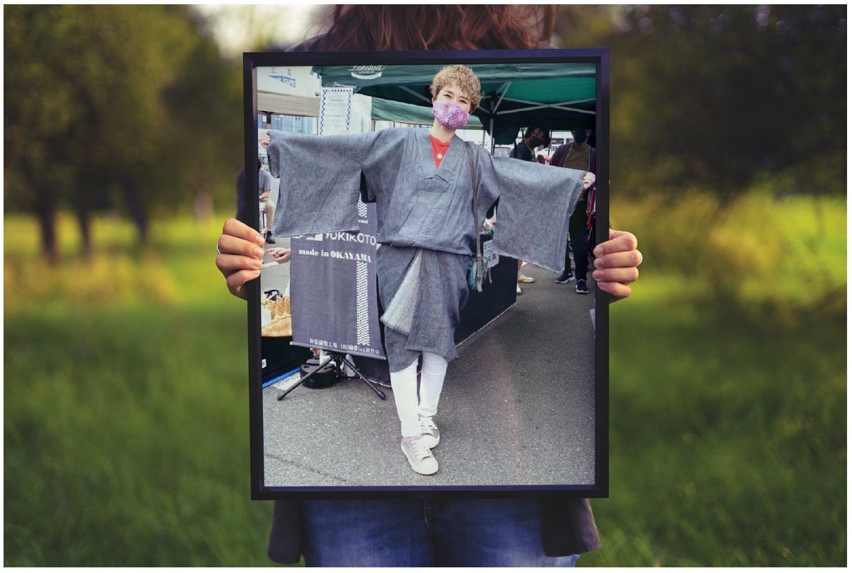 写真はおかマルにクラファンで支援していただいた、KANAKO+さん(振付師)さんがセルビッチデニム浴衣を着こなして来てくださいました!!!