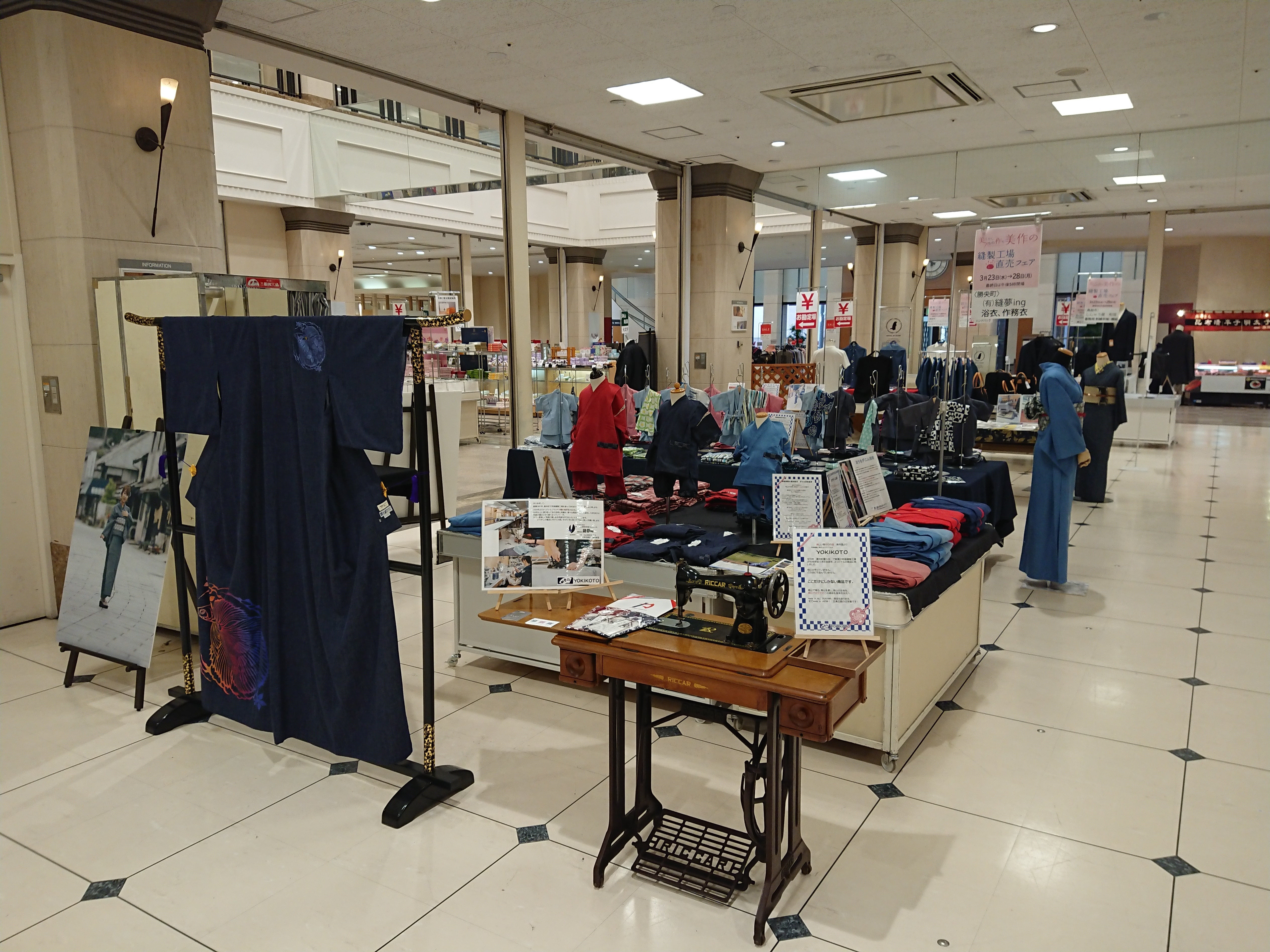 夏に近づき、色々挑戦をしている毎日ですが、クレド岡山 MUSSEさんと、おかマル(岡山マルシェ)とイベントが終わりました。やはりこの2年ぐっとこらえた所があったのでしょうか、この連休からの人出の多さにびっくりしている所ですが、感染対策を万全に、その中で注意しながら行動していかなくてはいけないという雰囲気ができてきたように思います。とても盛大なマルシェでした。主催者の方は「岡山1のマルシェにする!なる!」と言われてましたが、その片鱗が1回目から見えたような気がします。きっと来られた方も愉しんでいただけたかと思います。その中で、YOKIKOTOもコラボができそうなお話が!!!マルシェでお客様だけではなく、新しく横のつながりができるって面白い。他のマルシェにも呼んでいただけるかも・・・嬉しい繋がりを増やせれるマルシェでした。写真はおかマルにクラファンで支援していただいた、KANAKO+さん(振付師)さんがセルビッチデニム浴衣を着こなして来てくださいました!!!さすがとしかいいようがなく、今にも踊られそうな着こなしでした。訪ねて来てくださり本当に有難う御座いました!!前から言っている事ですが、YOKIKOTOは古き良き物を守り新しくを考える。が方針です。伝わってきた伝統は大事に守り、正統な着方ができる着物を仕立てている中で、新しく普段着で着れる和の服のラインナップも考えています。日本語もしかり、着物も1000年の歴史の中でどんどん変わってきています。正統派と新統派この2本柱の確立こそ令和の時代にそったYOKIKOTOの目標です。京都の祇園祭も開催されると聞きました。和装の中のお祭り部隊ではこの祇園祭が一つの目安になっているようです。大阪岸和田のお祭りはそれより先に開催を宣言されていたみたいですが、我慢しきれなかったようですね(笑)でも、その判断も大事なのかなと。京都の鉾は毎年組み立てる物とは知らなかったのですが、何年もしなかったら組み立て方を伝えられないと昨年は組み立てるだけのお祭りにしたそうです。伝統を伝える。とても難しく大事な事です。ないがしろにしてはいけない。私達の仕事もそう。大事にするべきものとこれからも守っていきます。どうぞ、今後ともご声援下さい!!