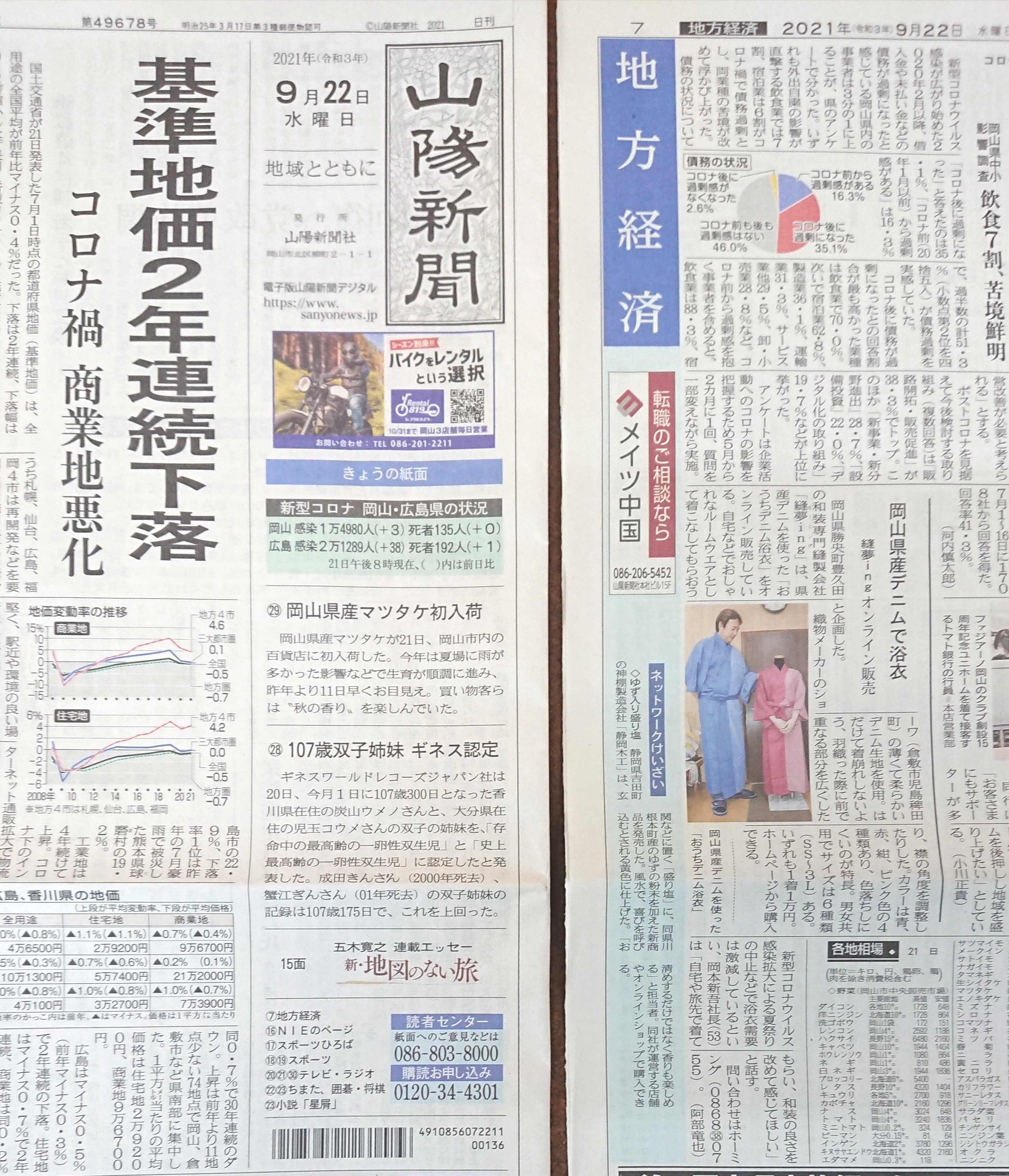 いつも沢山のご支援と温かいご声援を頂き有り難う御座います。達成率381%!お気に入り登録152名!沢山あるクラウドファンディングの中から見ていただき有難う御座います。2度のネクストゴールをさせて頂きましたが、ご支援を引き続き宜しくお願い致します。もう少し夢を見させてください。宜しくお願い致します。今朝山陽新聞さんに弊社を載せて頂きました!!2021年9月22日の山陽新聞7面 地方経済欄に載せて頂いてます。全県版。7面。弊社の記事の中では前の方です。有難う御座います!!山陽新聞さんは他のクラウドファンディング会社との提携もあり、さすがにこのクラウドファンディングは載せて頂けなかったのですが、その中でこの記事をよく書いていただいたなぁと記者の方には感謝しかないです。先日も、朝日新聞さん、津山朝日新聞さんにも載せて頂き、このクラウドファンディングを広めて頂いた力はとても大きく感じています。有り難う御座います。この新聞にも取り上げて頂いたおうちデニム浴衣。2021年に入って企画したものですが、まだまだコロナ禍、上手く付き合っていかないといけないし、まだおうち時間は大事にしてほしい思いから、おうちで簡単に着れる浴衣はできないかと考えた物です。それもあってか、今年の年末、お歳暮商品として、大丸松坂屋百貨店さんのオンラインショップ商品にノミネート致しました!色合いはこのクラウドファンディングにはない紺をベースに赤の差し色をいれた柄です。たぶん、ほぼ大丈夫かと思うのですが、私が何か大きな失敗をしなくもないので、絶対とはまだ言い切れないのではありますが、販売ができるかと思っています。このクラウドファンディングが終わりましても、皆さんの目に入るように、一つでも沢山のYOKIKOTOが目につくよう継続して頑張ります。出し惜しみをしていたわけではないのですが、良い機会だと思うので、PVと一緒につくったおうちデニム浴衣の1分動画を、YouTubeにUP致しました!!撮影場所は、勝央町にあります居易庵という一棟貸しの迎賓館。奥津湖という大きなダム湖があります。ダム建設をするにあたり水没する古民家をばらして移築したものです。ですので、古民家と和の服の相性は抜群。1分動画でもありますので、サクッとおうちデニム浴衣の質感や良さを見て頂けるかと思います。おうちデニム浴衣: YouTube おうちデニム浴衣 はこちらから!居易庵詳細 : ネットサイト 居易庵 はこちらから。残り8日!私も力いっぱい愉しんでまいります!!ご支援を宜しくお願い致します。30日までシェアのご協力とご支持・ご声援を宜しくお願い致します。