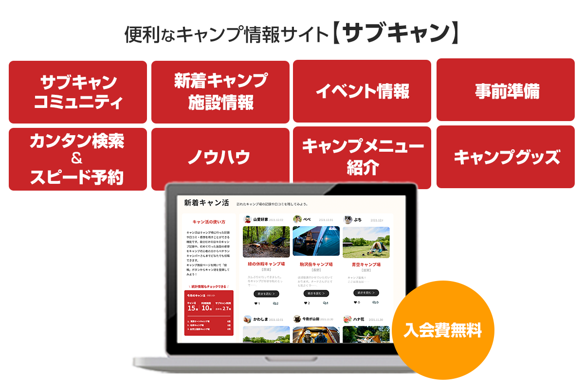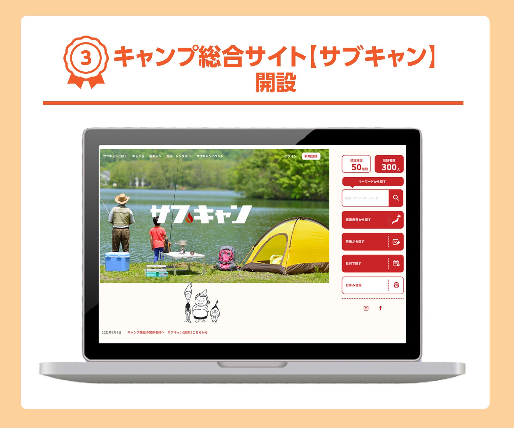 さらに、キャンプ場&サブスク申し込み・予約をはじめ、キャンプがいちだんと楽しくなるさまざまな情報を集めた総合サイト【サブキャン】を2022年4月に開設する予定です。