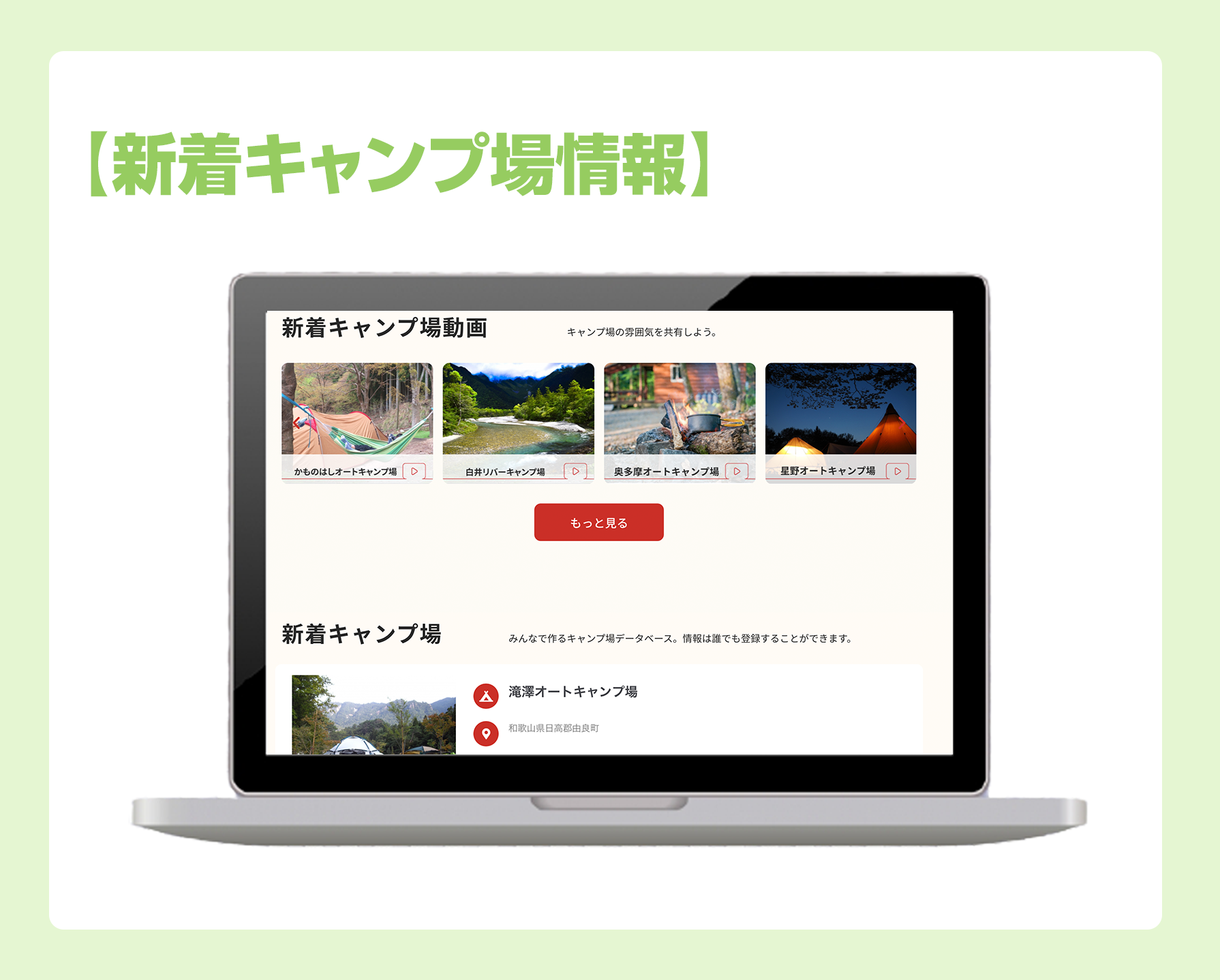 世の中には数多くのキャンプ関連サイトがありますが、予約専用サイト、キャンプ場情報サイト、キャンプ用品販売サイト、キャンプ場の独自サイトなど、用途別になっているのが現状です。