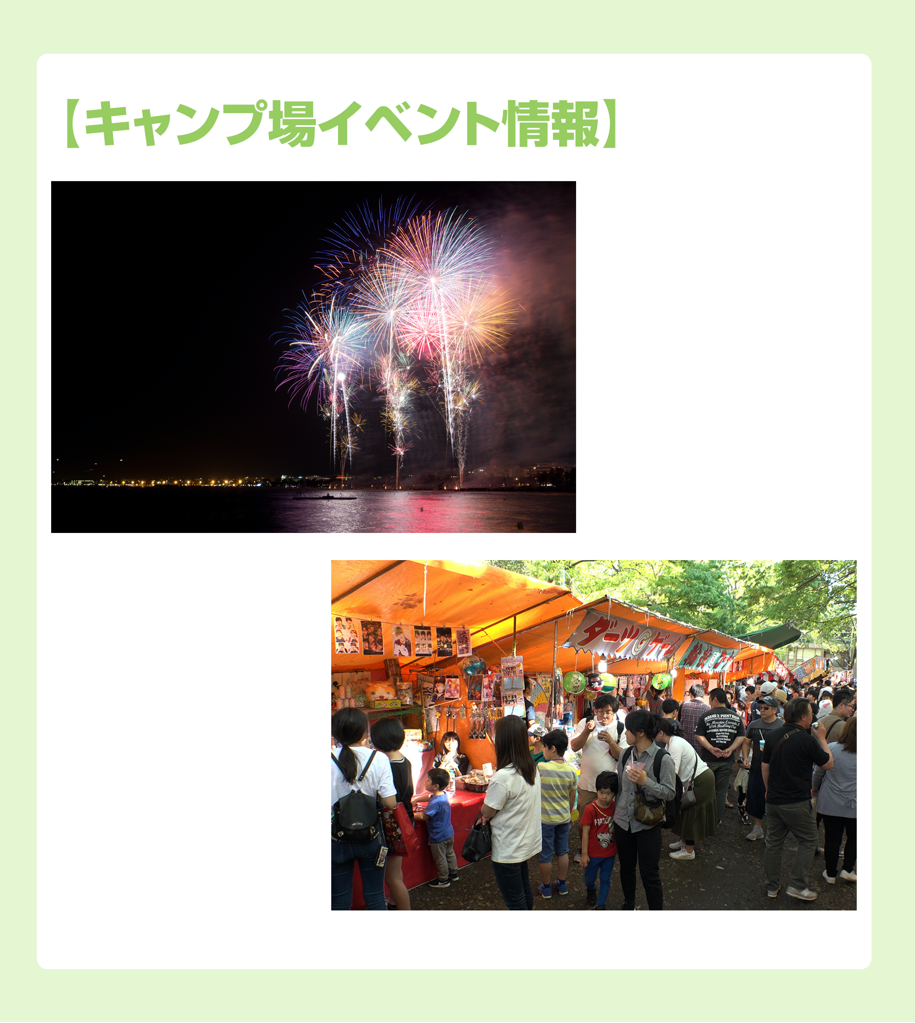 登録キャンプ場と連携し、施設でのイベントや近隣で開催される花火大会の情報などをいち早くご紹介します。