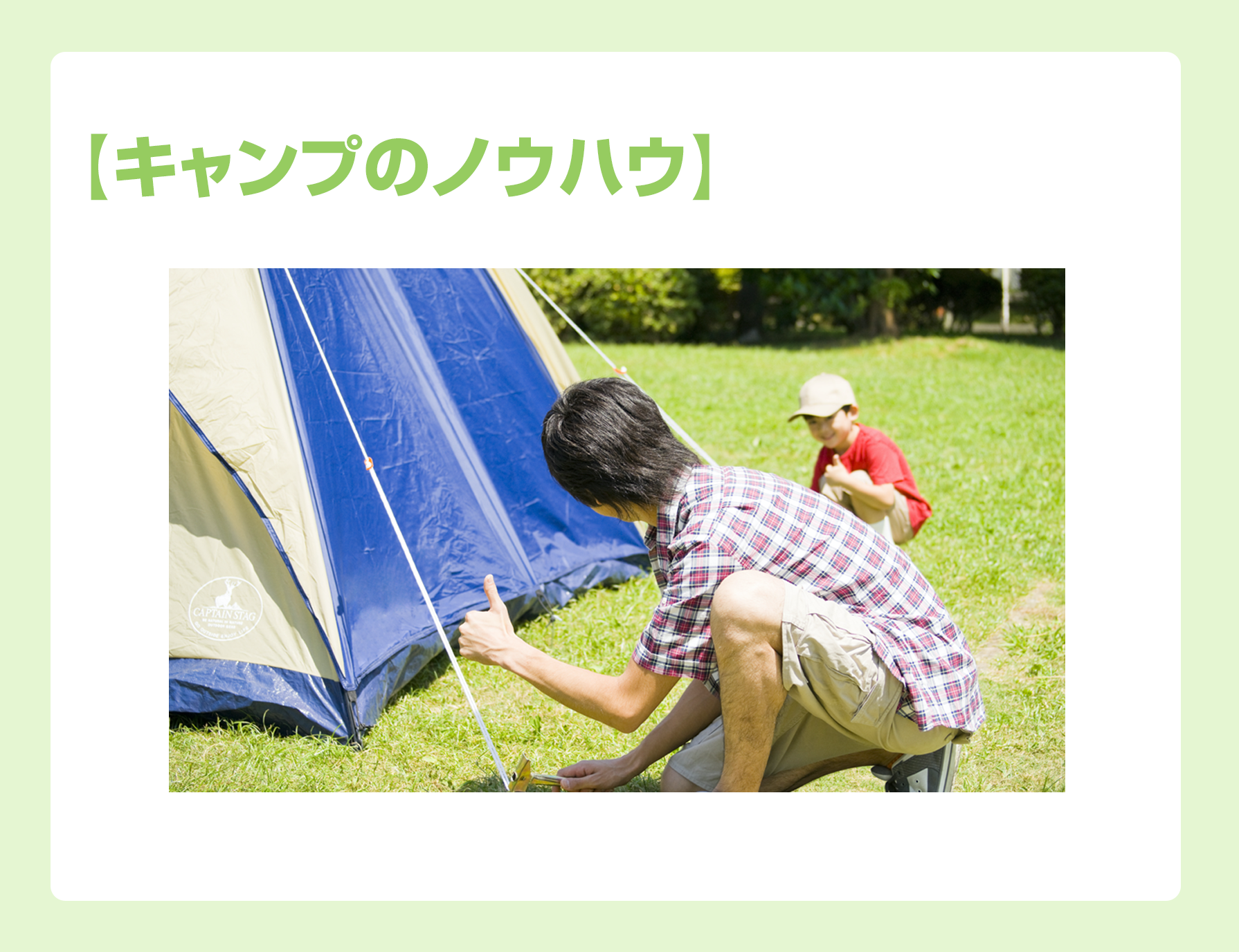 遊ぶ時間や食事の時間を充分に確保するためにもテントの設営は要領よく、短時間で。スピーディにテントを設営するノウハウだったり、キャンプの質問、疑問にもお答えします^^