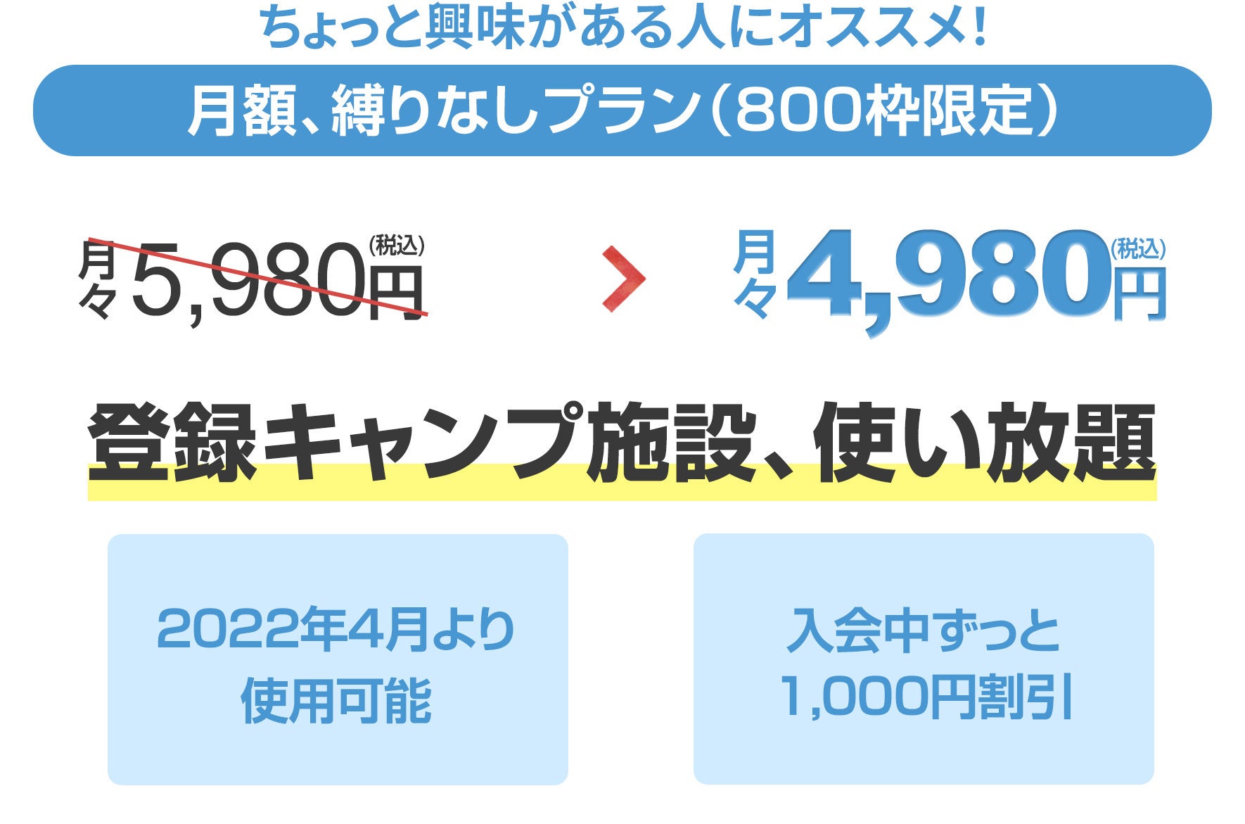 日本中の登録キャンプ施設を月額5,980円で何度でも利用できるキャンプのサブスクをはじめたいと思います。
