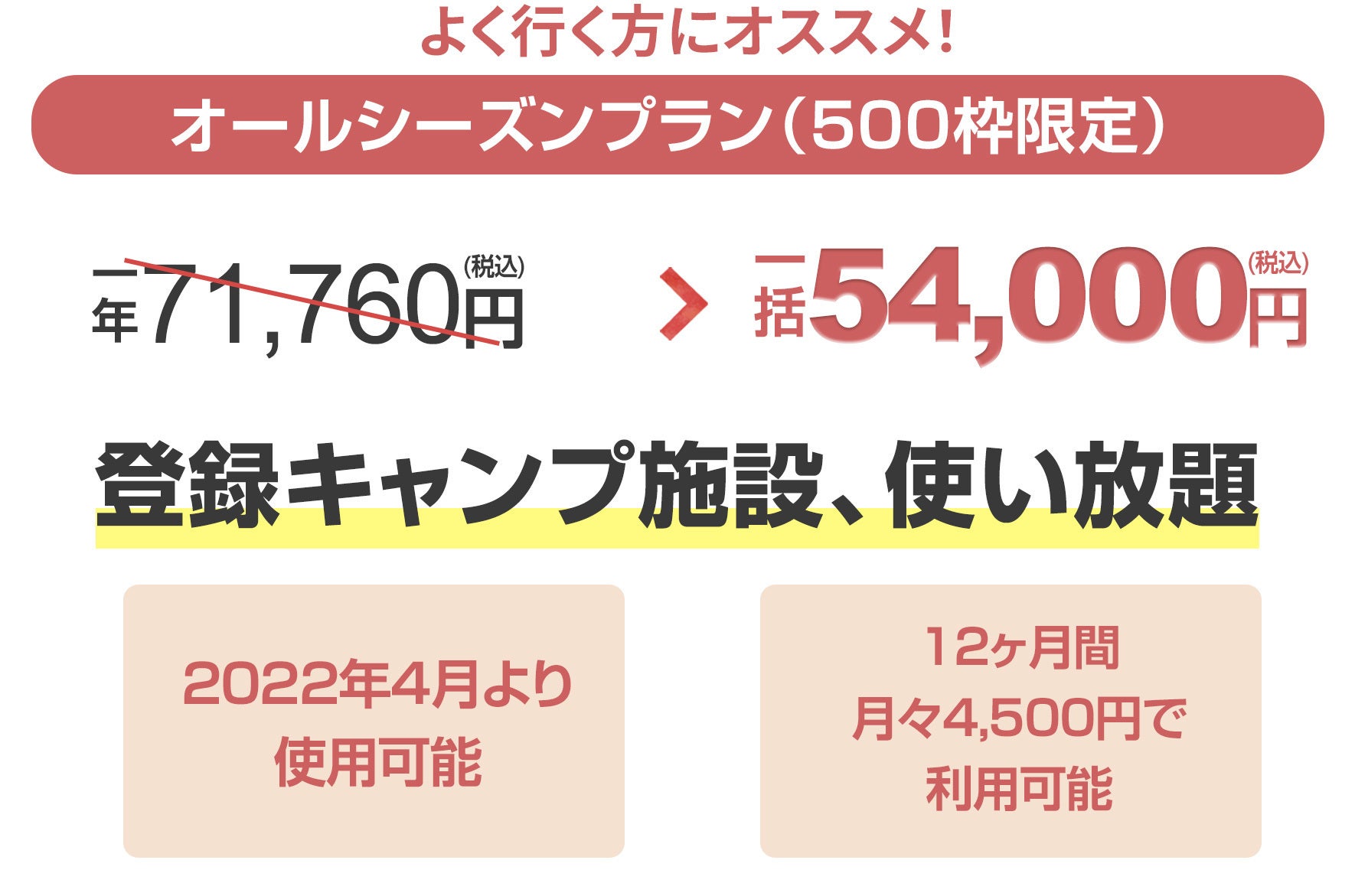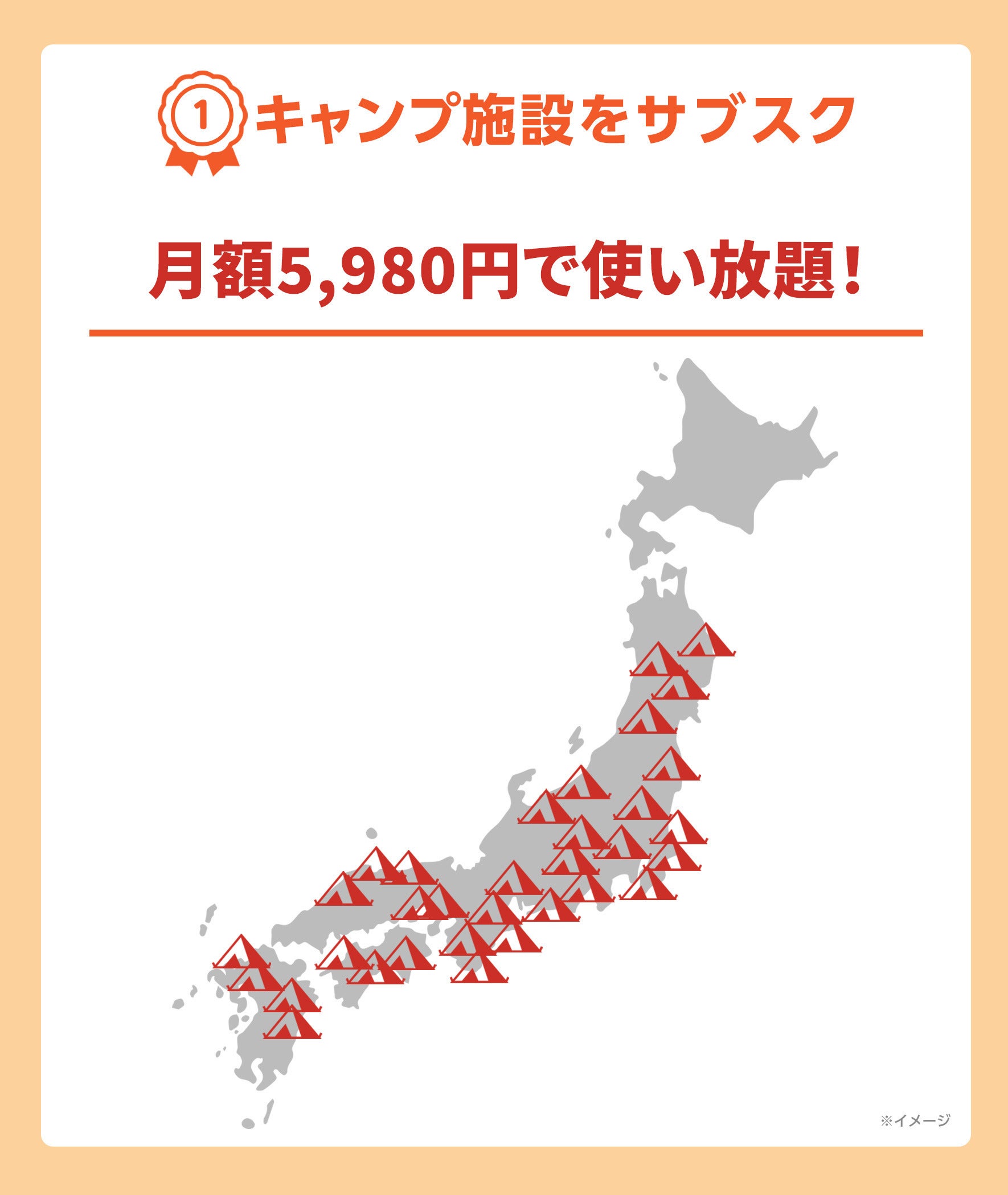 日本全国のさまざまな登録キャンプ施設を月額5,980円でお好きなだけご利用いただけます。