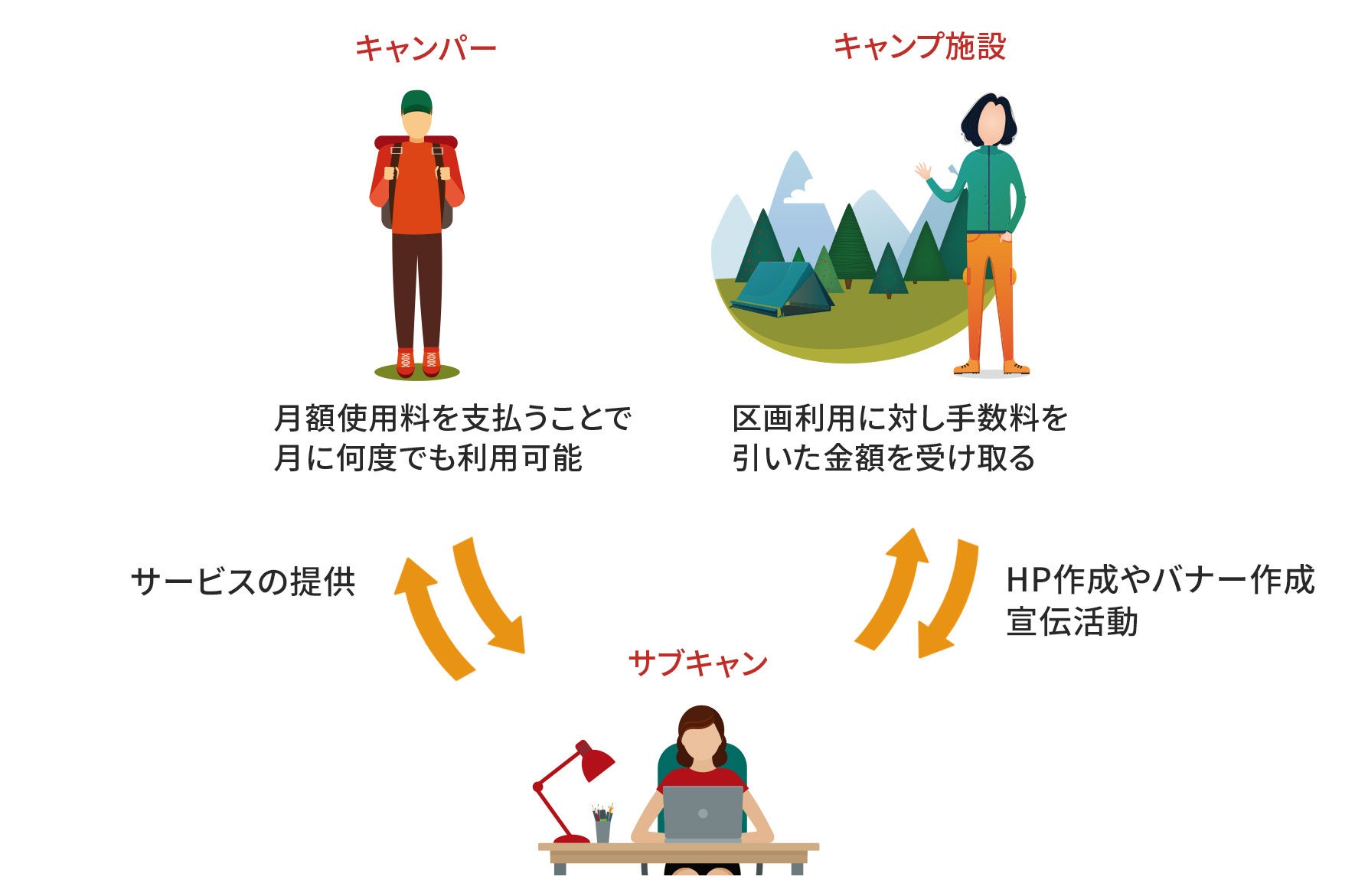 定額制にすることにより、会員様にはより多くキャンプ施設を利用してもらうことができます。キャンプ施設側にとっては利用者を増やしたいという思いがあるので、使う側、使ってもらう側、両方にメリットが出る仕組みを考えました。 キャンパーとキャンプ施設を繋ぐ架け橋になりたいと思いこのプロジェクトを立ち上げました。