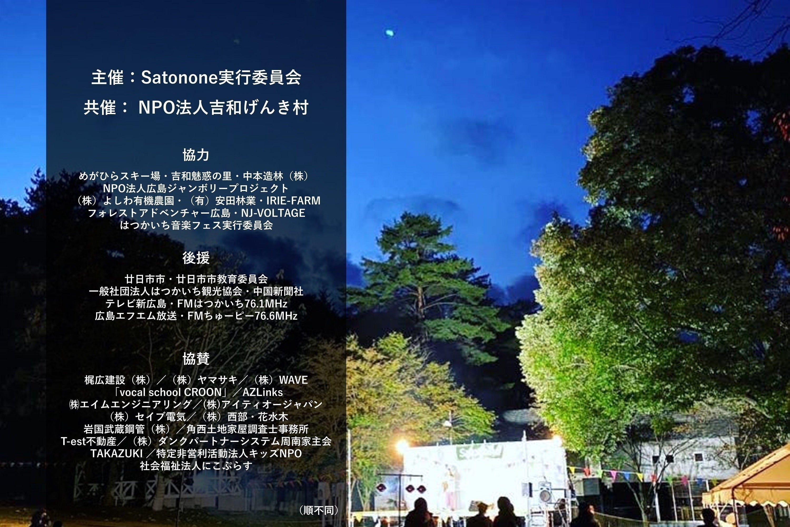 昨年:2020年10月24日『Satonone’20』を吉和魅惑の里で開催し約600名を動員。