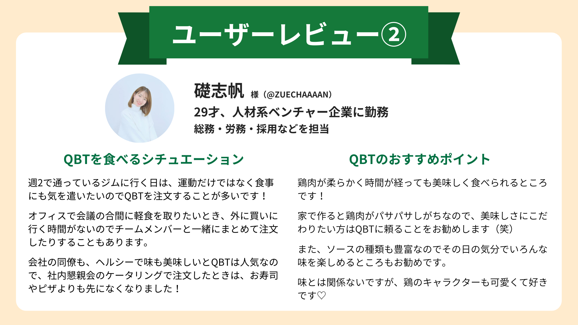 などなど、高たんぱく低糖質な特徴を活かして様々なシーンでQBTをご活用いただけます。