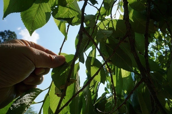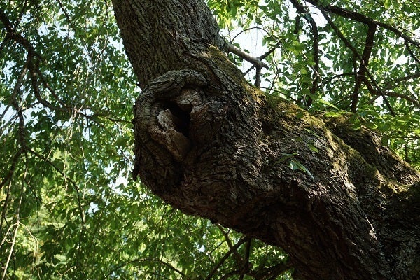 枝の表皮に苔や茸がみられ、キツツキによると思われる、幹に穴があいているところもみられます。