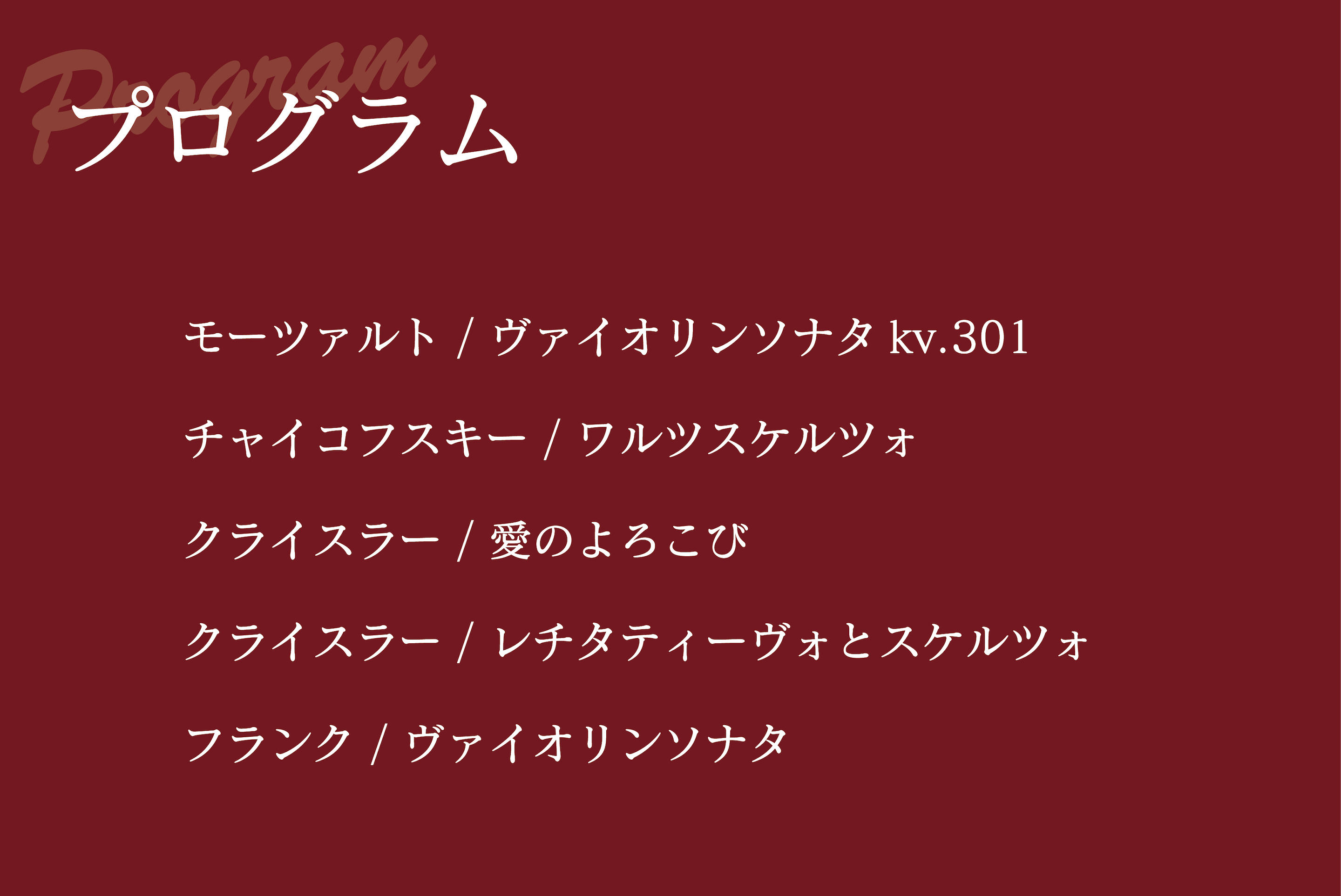 このコンサートのメインプログラムは、フランク作曲のヴァイオリンソナタ。