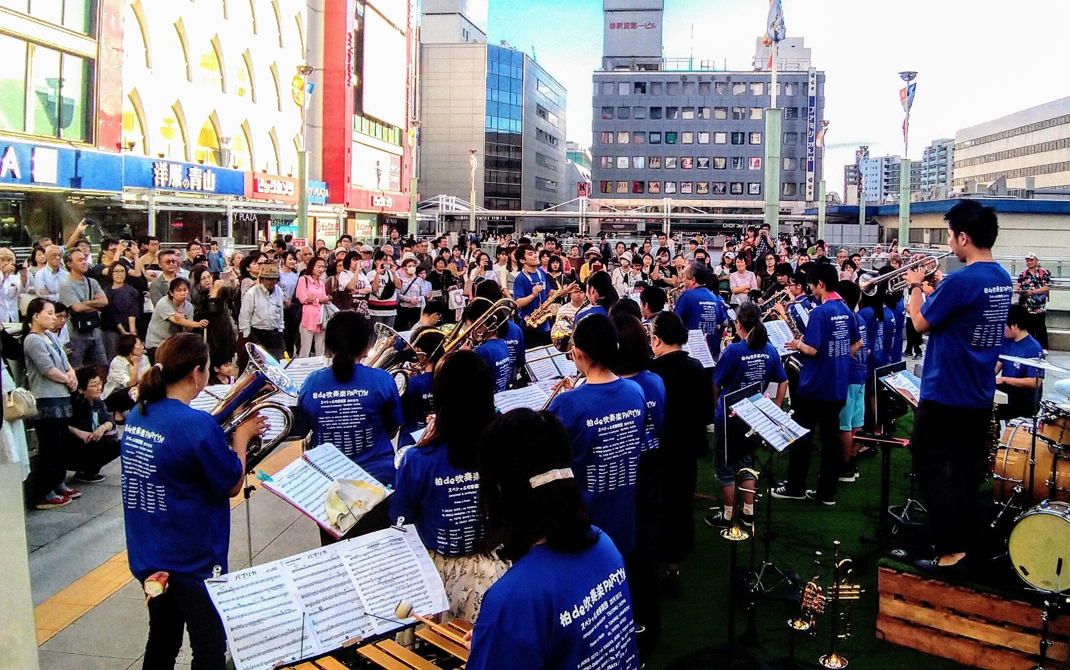 2019年に応募して集まった1日だけの吹奏楽団。事前にプロから2度のレッスンをうけ柏駅前で演奏を披露しました。その際、地域の吹奏楽団設立を強く意識することになりました。