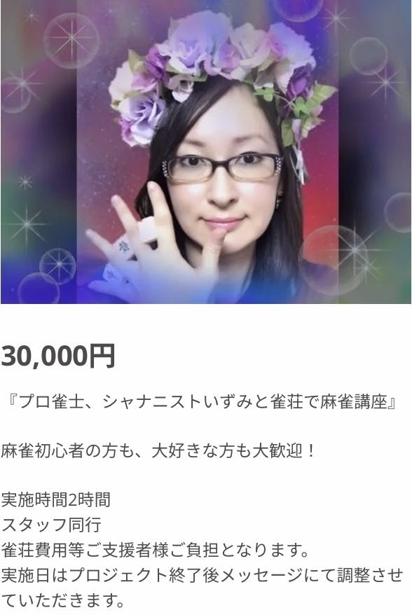 シャナニストいずみこといっちゃんは、シャナニー(社内オ〇ニー)のスペシャリストでもあり、プロ雀士でもあるので、いっちゃんが手取り足取り腰取り!麻雀講座をしてくれるリターンがございます♪