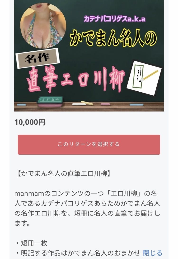 そんなかでまん名人の傑作川柳を、短冊に直筆でしたためて、郵送するリターンを追加しました!