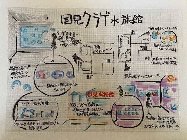 この写真は、当初のラフ画になります。ですので、名前も国見クラゲ水族館になっております。