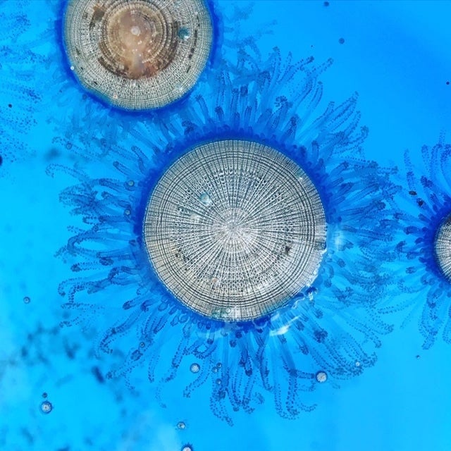 このクラゲは夏の終わりごろに日本近海に海流に乗ってやってきます。