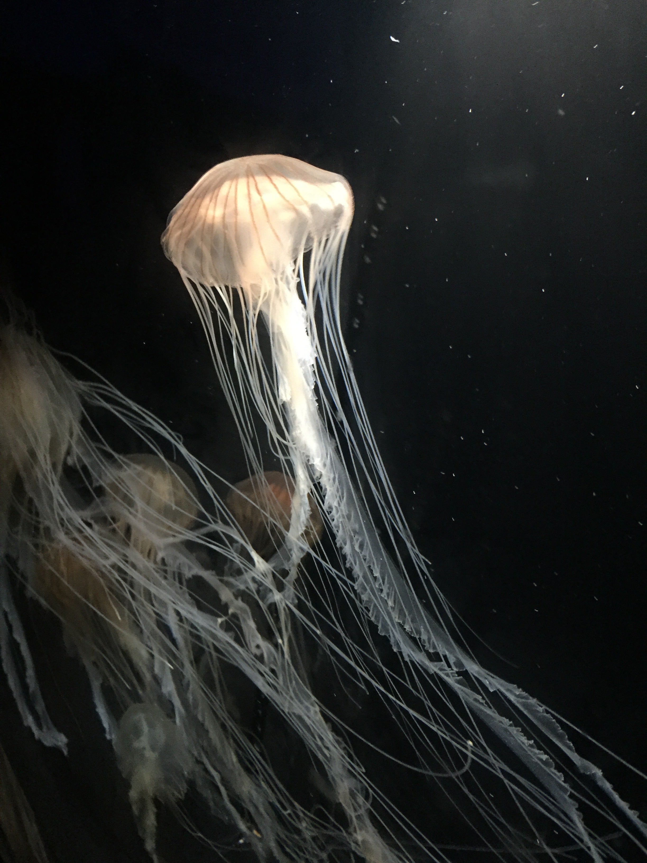 このプロジェクトをご覧いただきありがとうございます!今回は、クラゲコーナーで、ミズクラゲと双璧をなすクラゲ「アカクラゲ」を紹介します。このアカクラゲは越前海岸でもなじみのあるクラゲですが、ミズクラゲと違って刺されると「痛い!」です(>_<)ですので、特に漁師さんたちからは嫌われているクラゲですが、傘の放射状の模様だったり、長い触手の優雅さだったり、、、水槽で見ると、また違った見方ができるのではないでしょうか(^^;)このアカクラゲ、乾燥させて粉末にし、それを吸い込むとくしゃみが止まらなくなるそうです。これを利用し、戦国時代の武将(上杉謙信や真田信繁(幸村))は、戦いのときに武器として使っていた、という逸話も残っています。流石にこれをワークショップで体験することはできませんが、生き物のこういった逸話や情報も発信していければと思います。